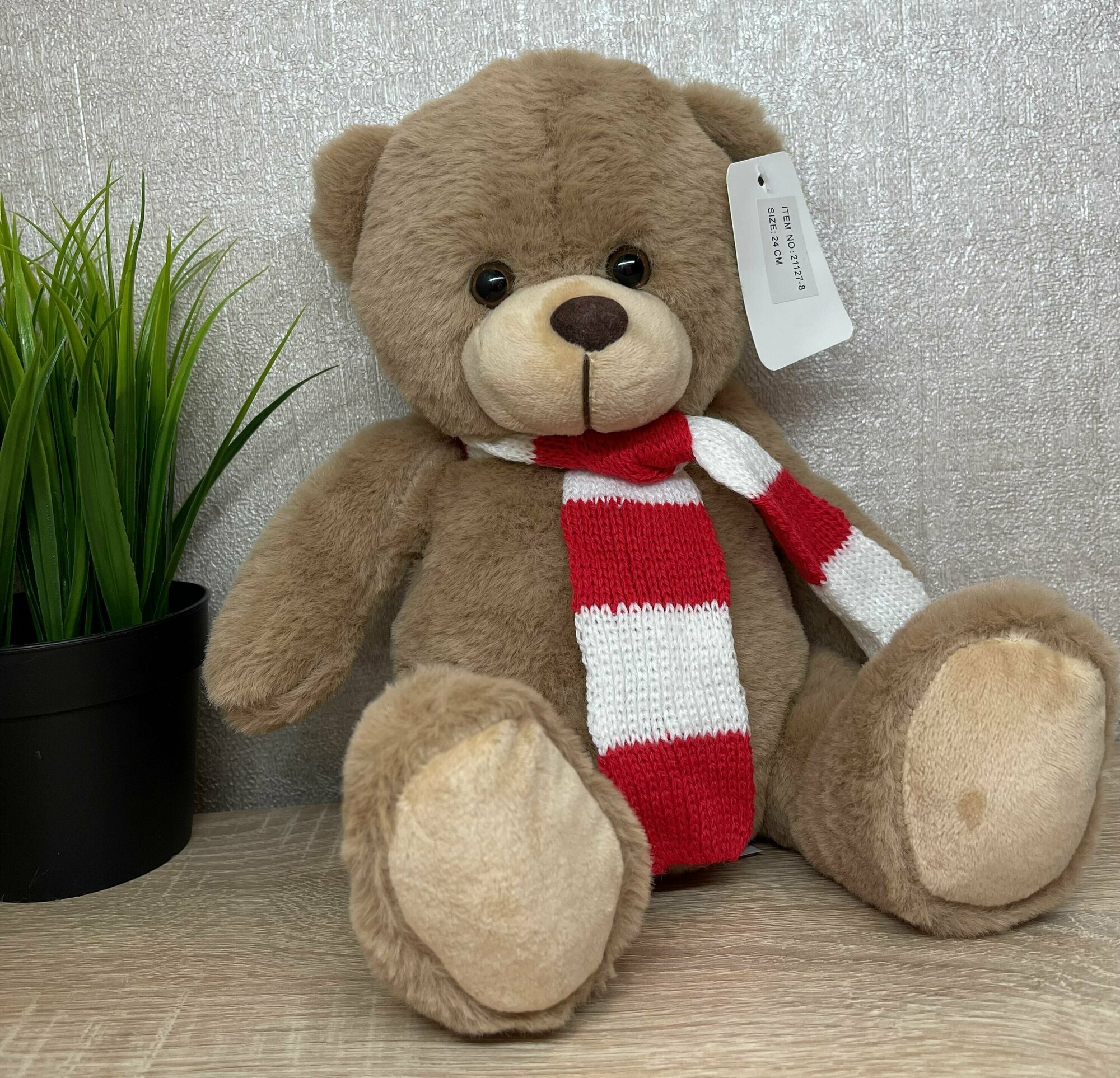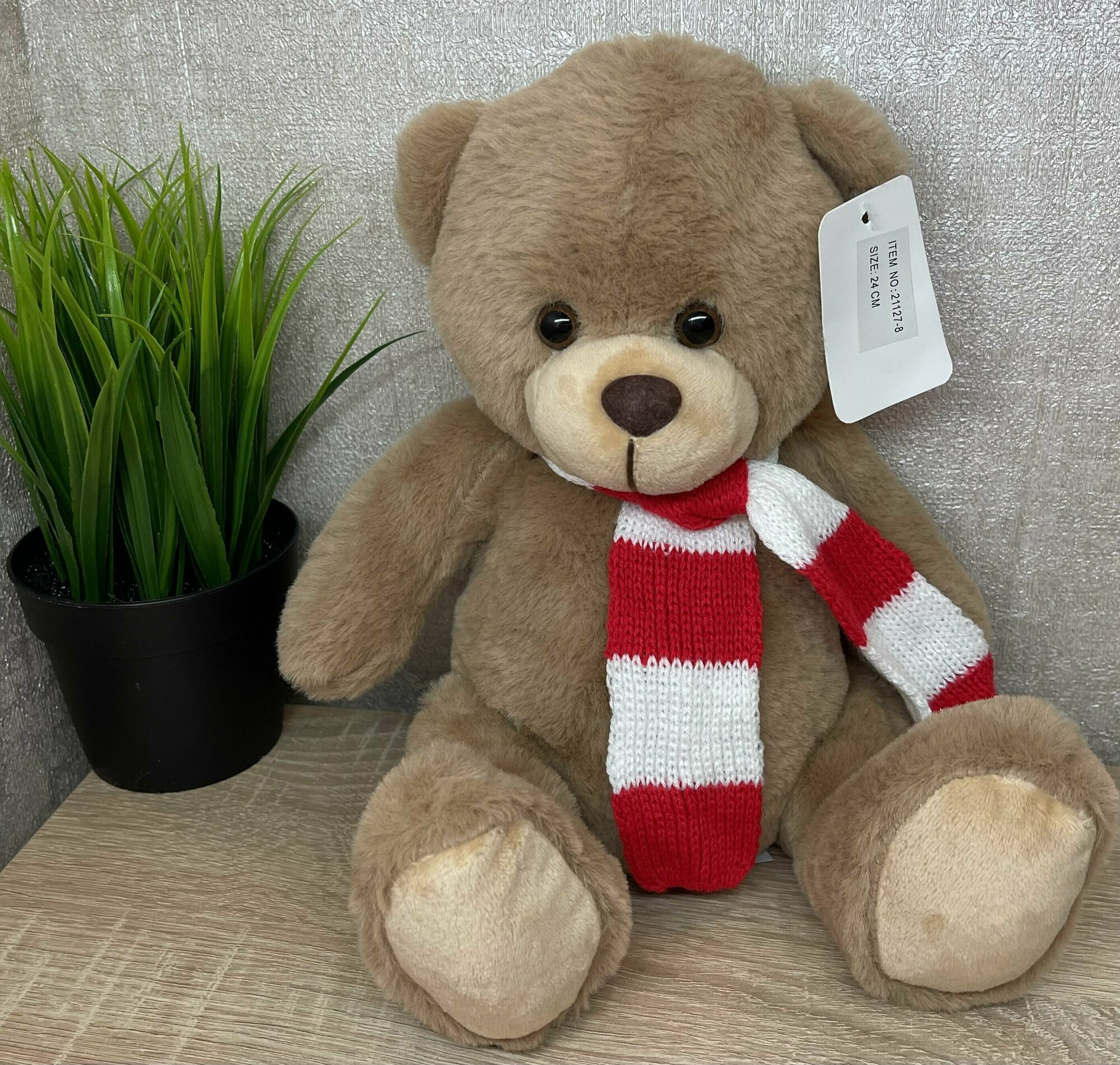 Мягкая игрушка плюшевый мишка / медведь / 24 см / бежевый / подарок / прикольный / с шарфиком информация: