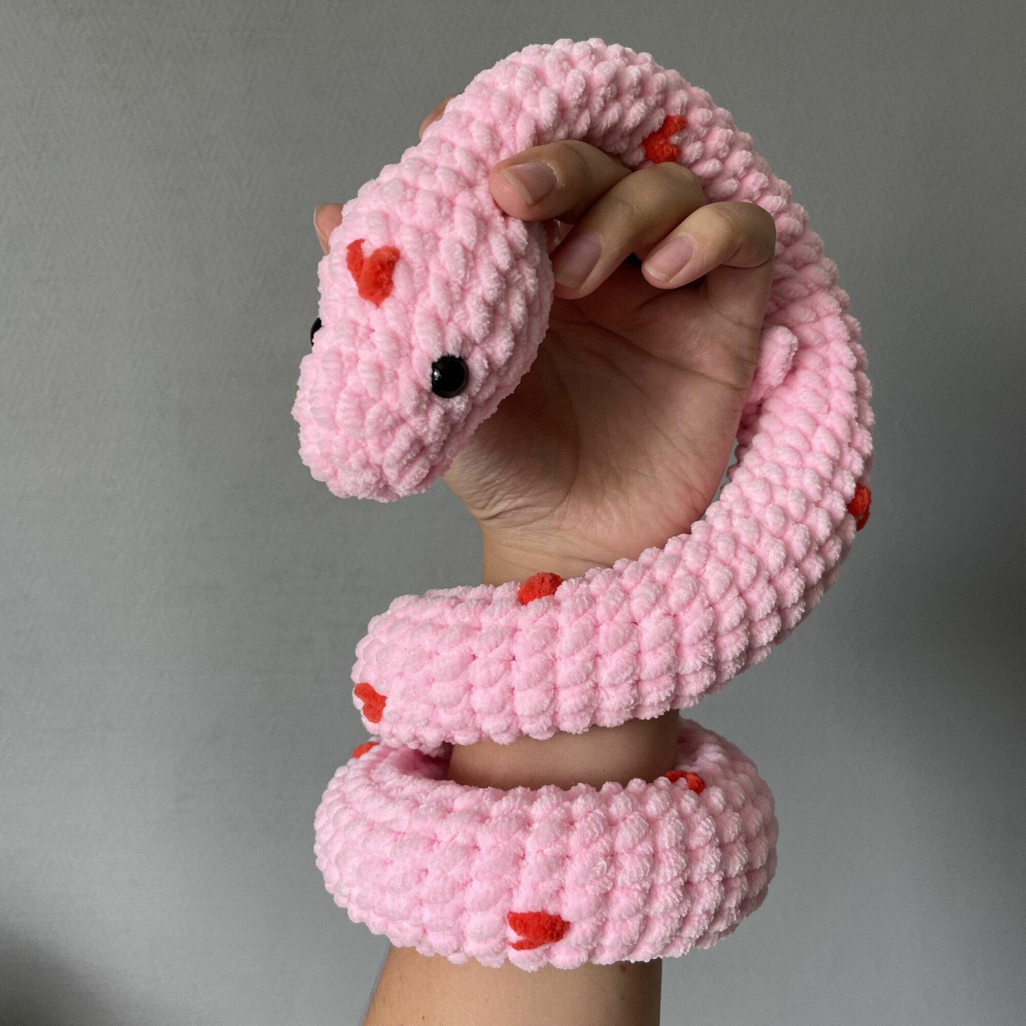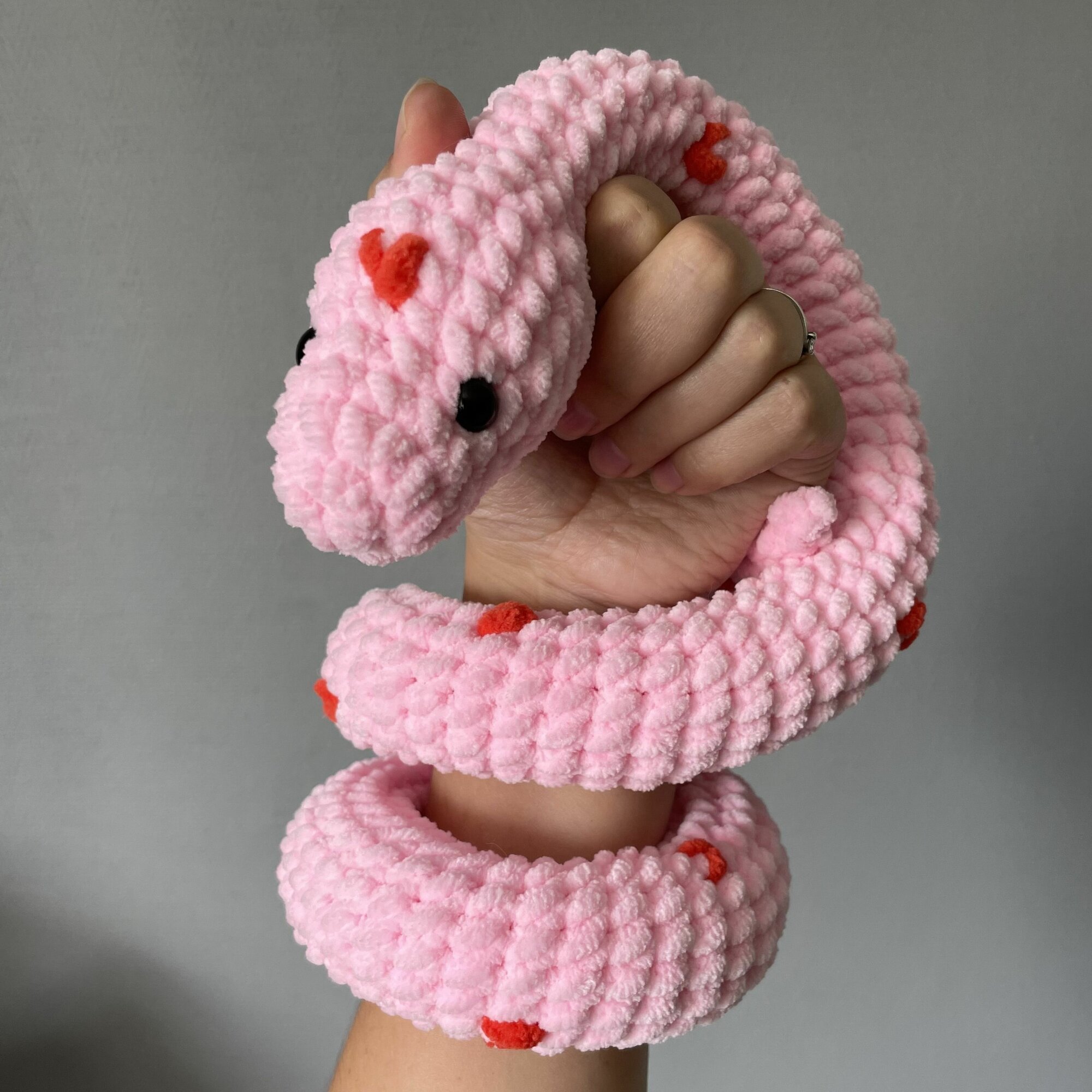 Отзывы на Вязаная мягкая игрушка "Змея" / змейка с сердечками / розовый 100 см