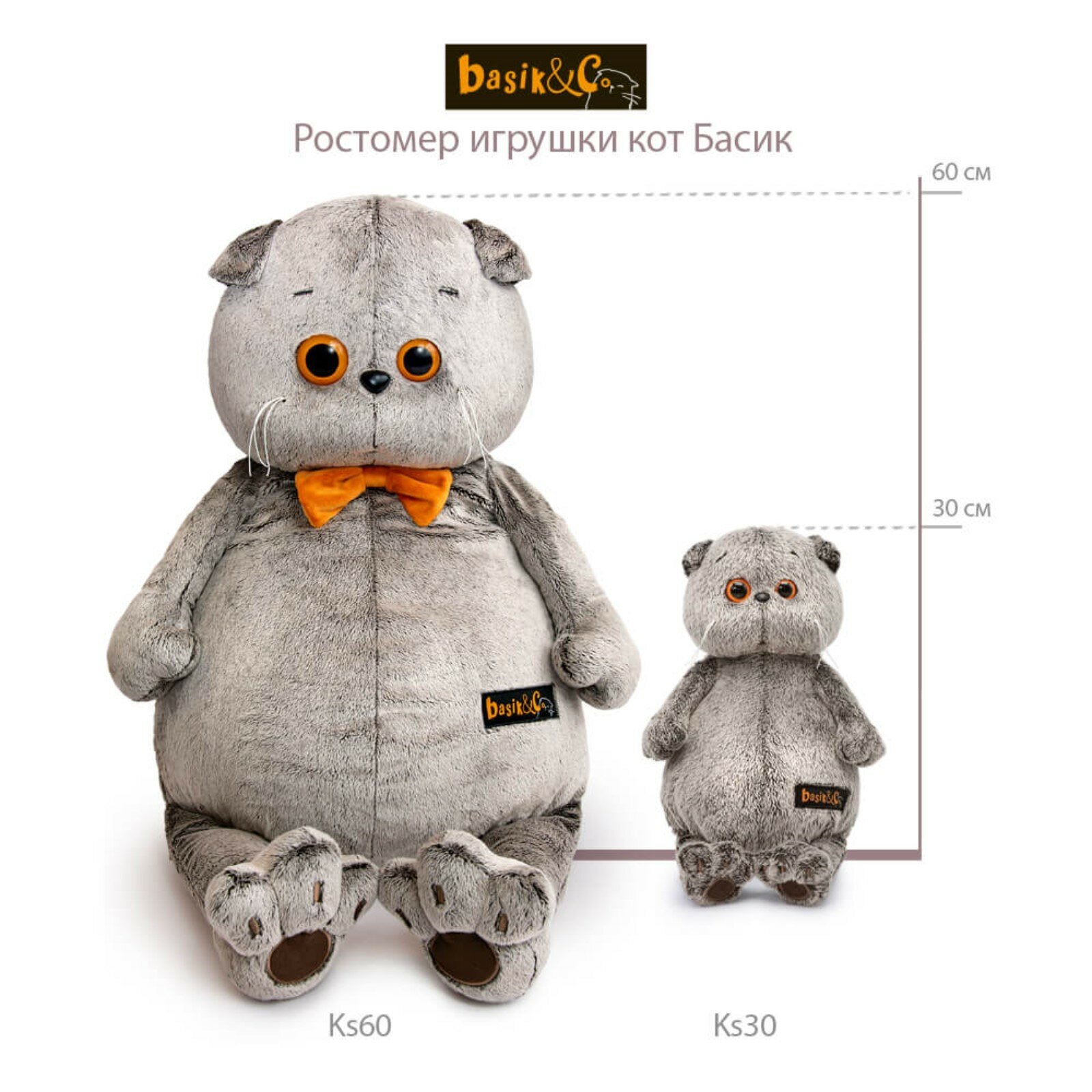 Budi Basa Мягкая Игрушка Кот Басик с бархатным бантом (60см) Ks60-01, (ООО "МПП") информация: