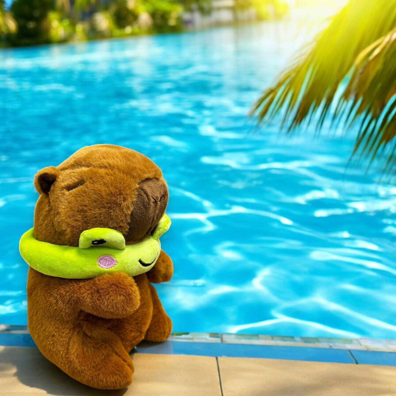 Мягкая игрушка "Капибара с кругом утенок" 20 см 587 ₽