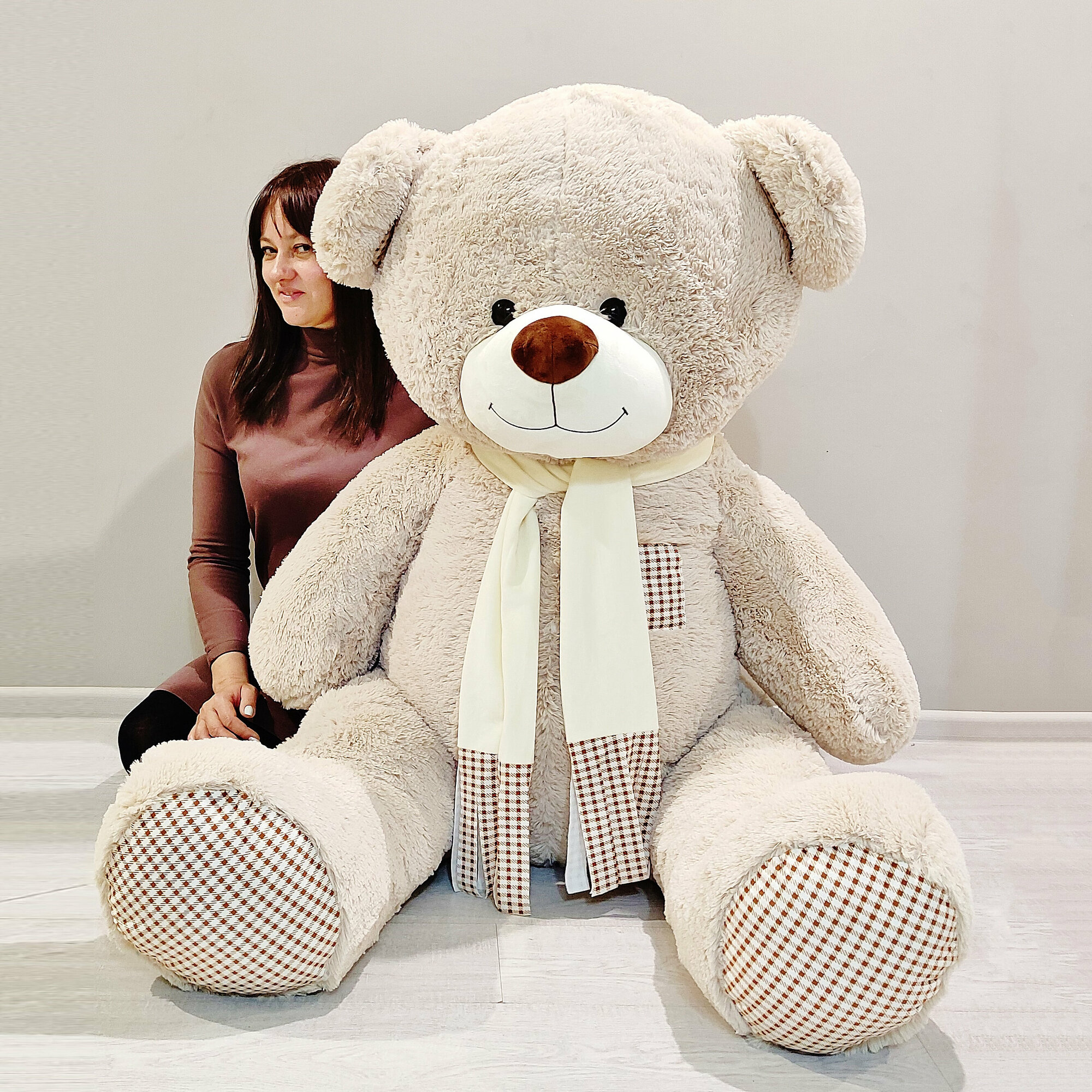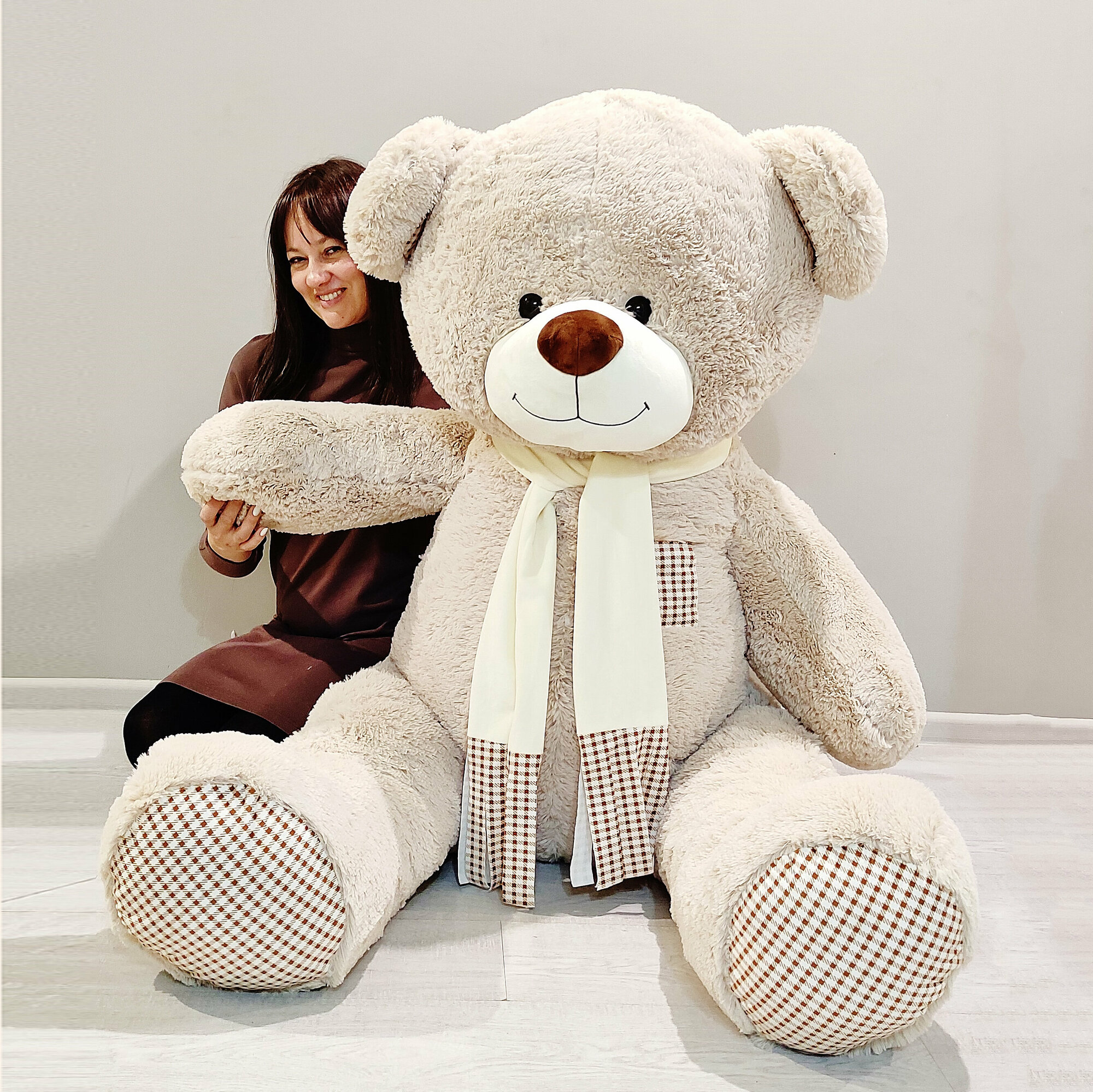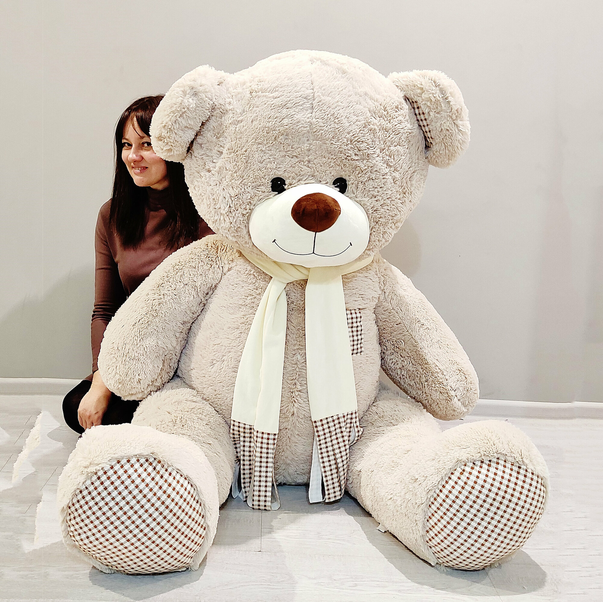 Отзывы на Большой плюшевый медведь, мягкая игрушка мишка Тоффи 190 см, серый кремовый
