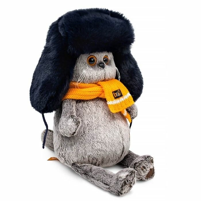 Мягкая игрушка Кот Басик , в меховой шапке и шарфе, 22 см информация: