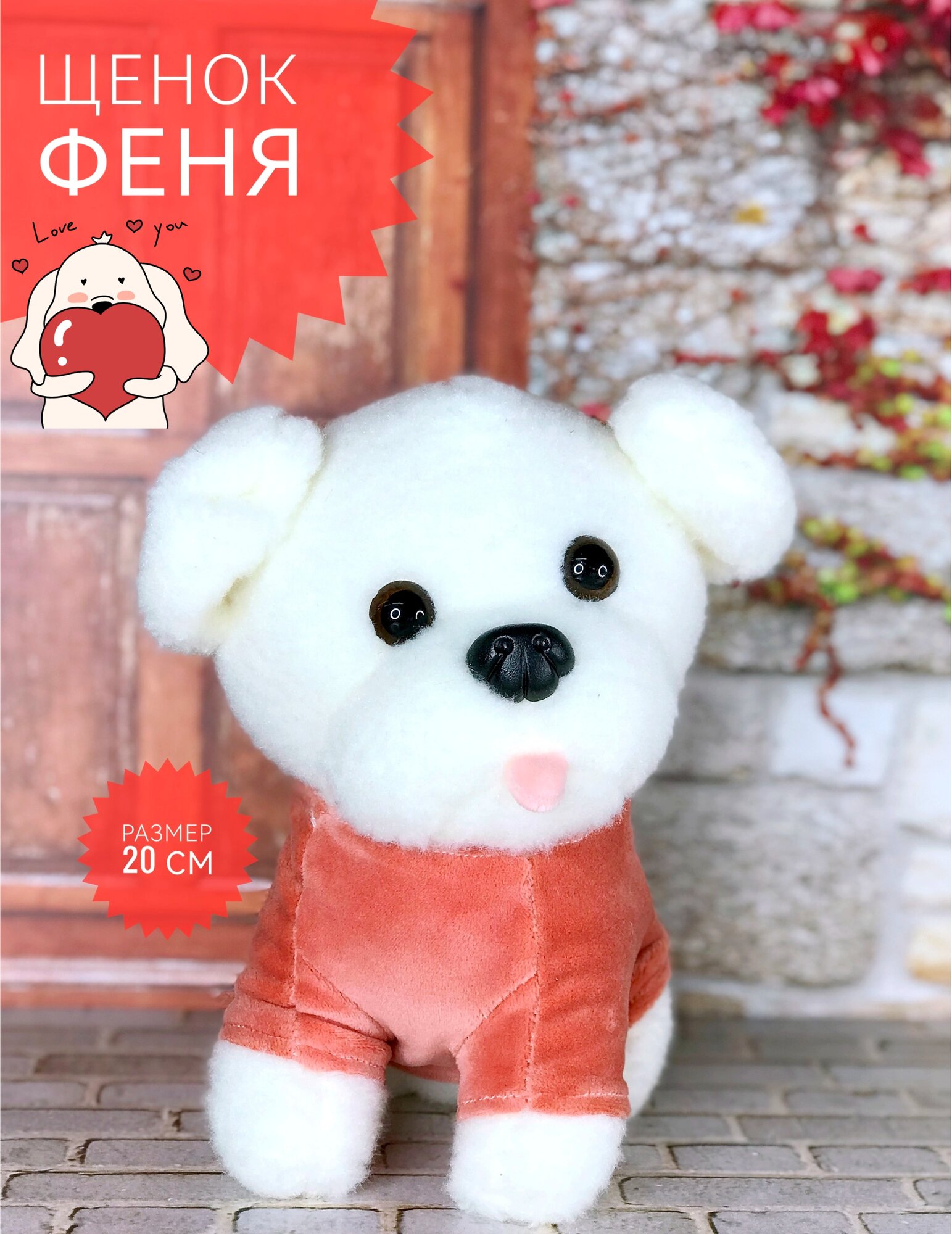 Мягкая игрушка Собака, Щенок Феня 20 см красный информация: