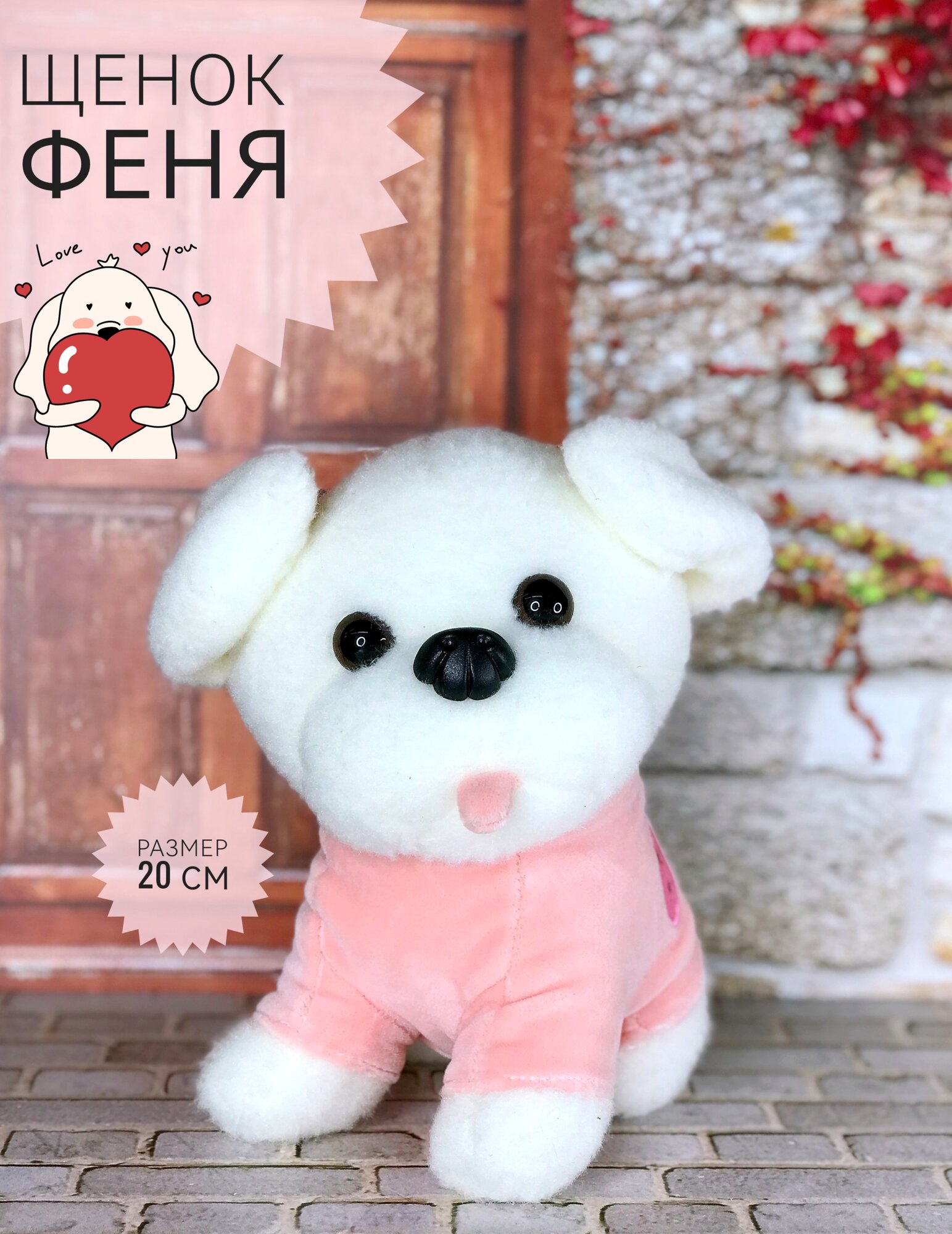 Мягкая игрушка Собака, Щенок Феня 20 см розовая информация: