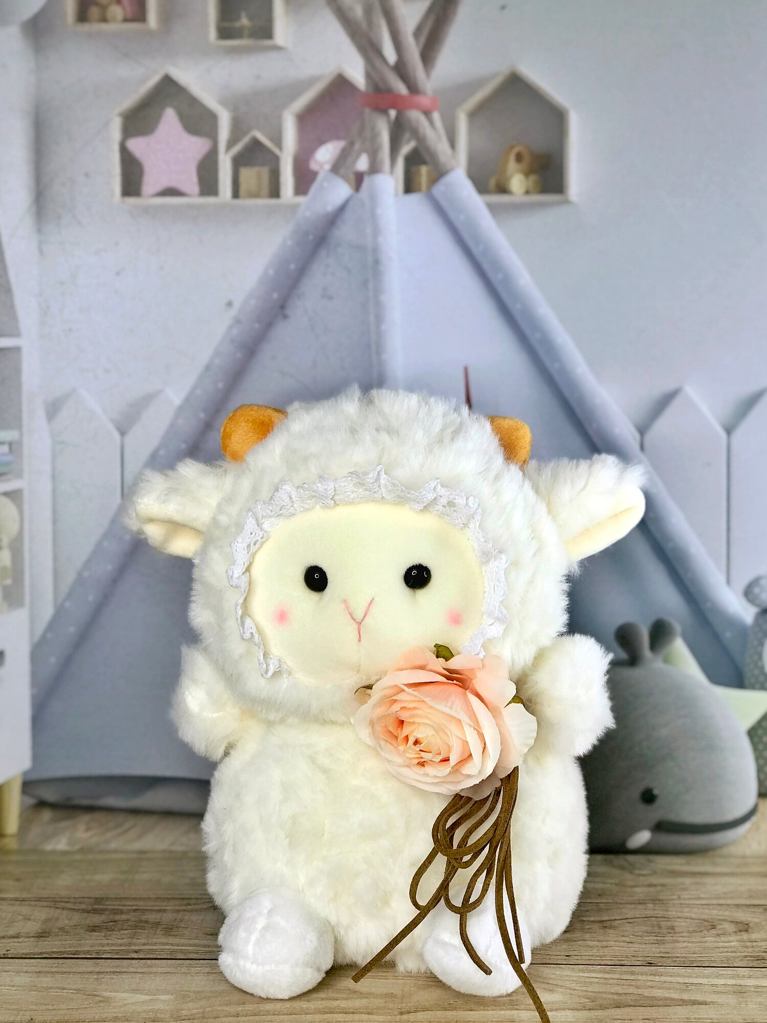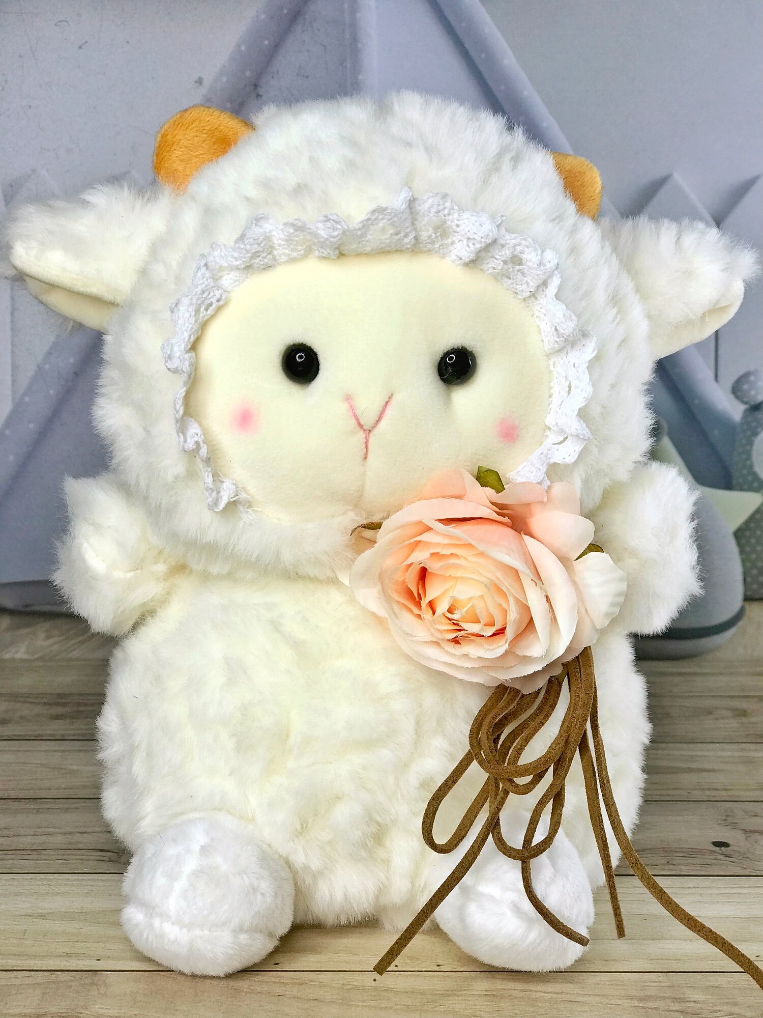 Отзывы на Мягкая игрушка антистресс Овечка с розой 20 см молочная/персиковая