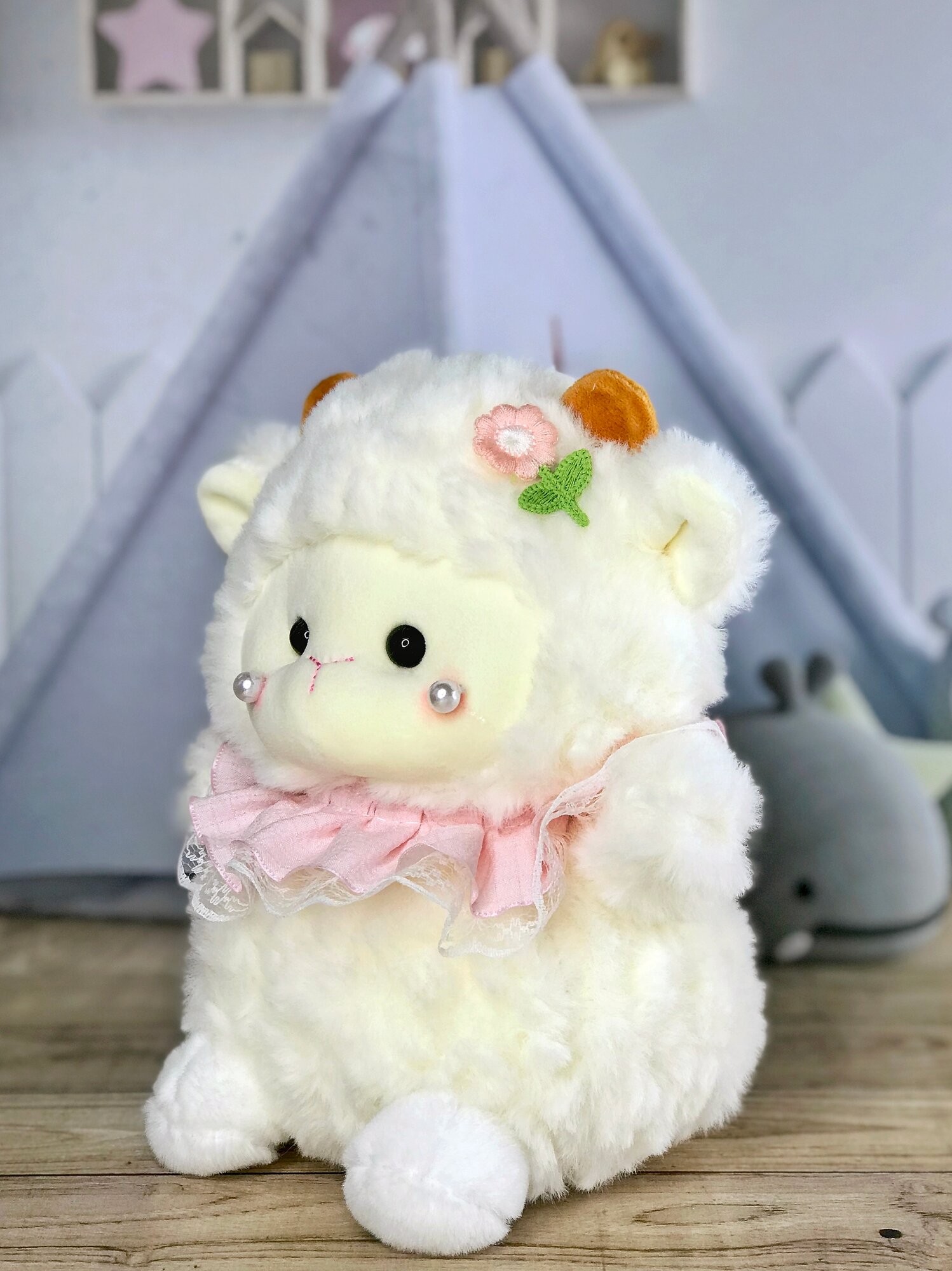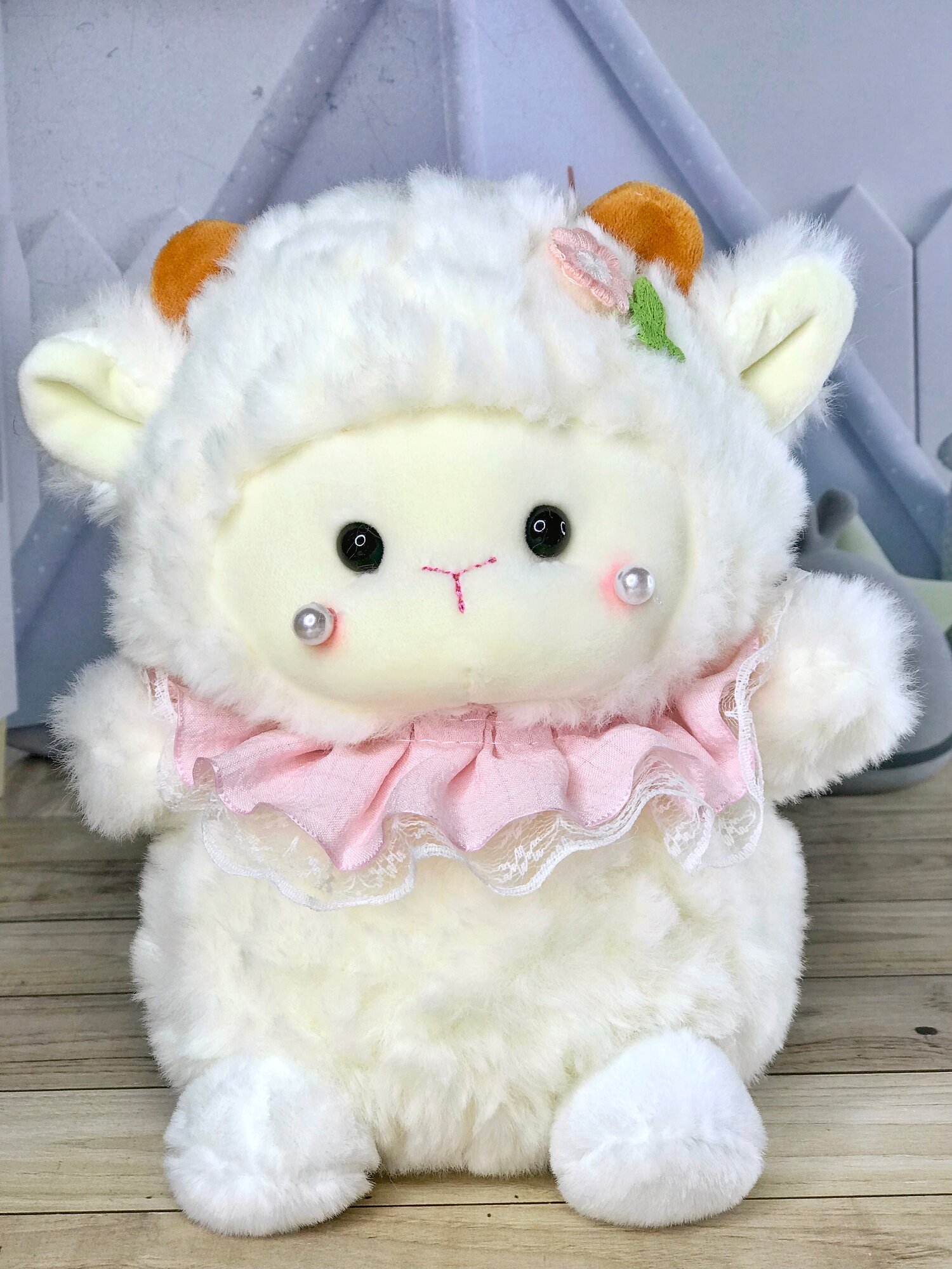 Мягкая игрушка антистресс Овечка с жемчужинкой 20 см светло-розовая информация: