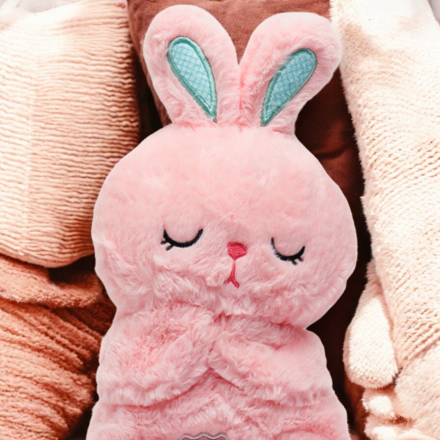 10 цен на Мягкая игрушка дышащая "Зайка" для засыпания, музыкальная, с ночником, розовый