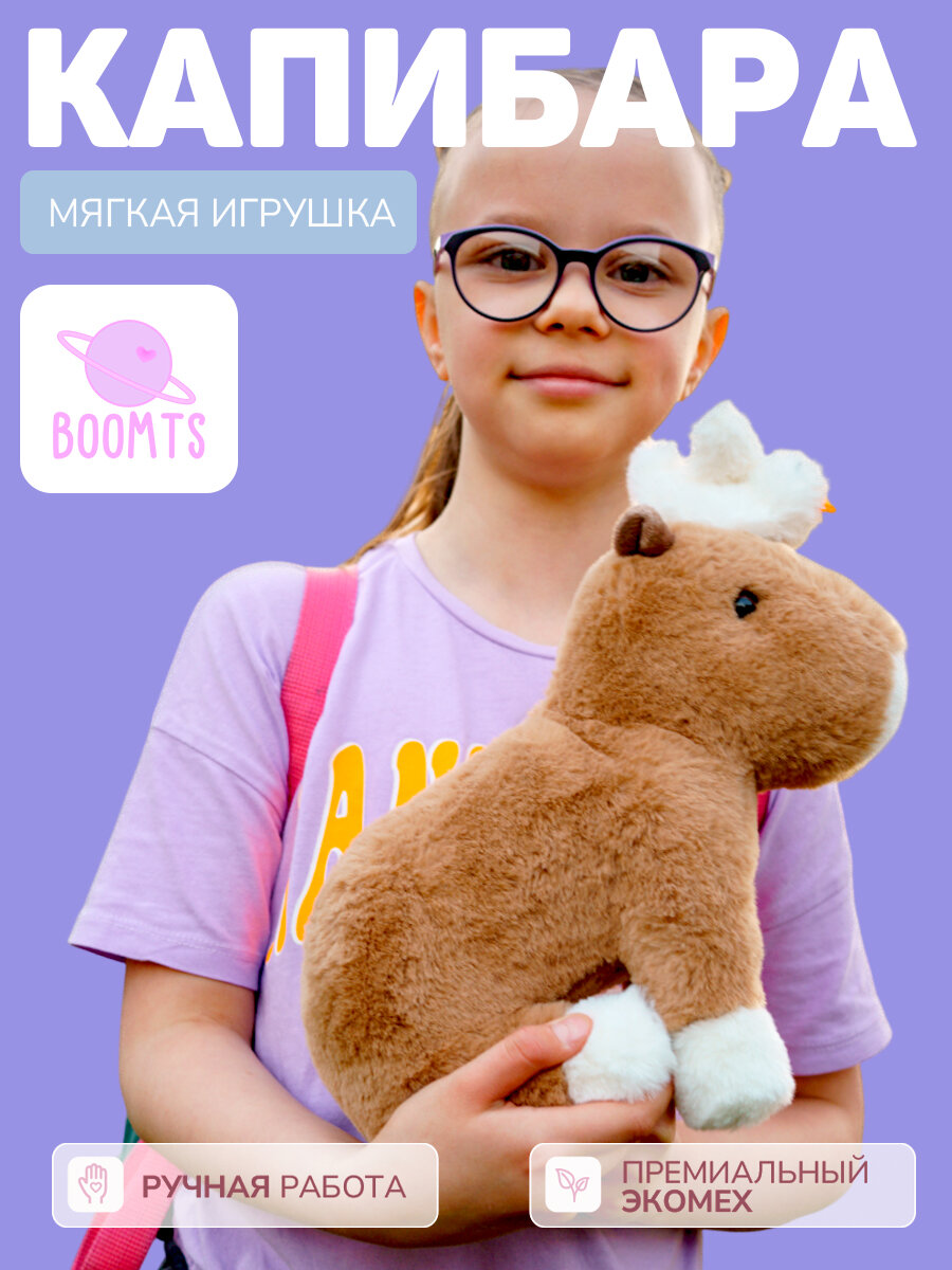 Капибара игрушка мягкая BOOMTS, цвет "Кофе с молоком" с гусёнком на магните, подарок для мальчика, для девочки информация: