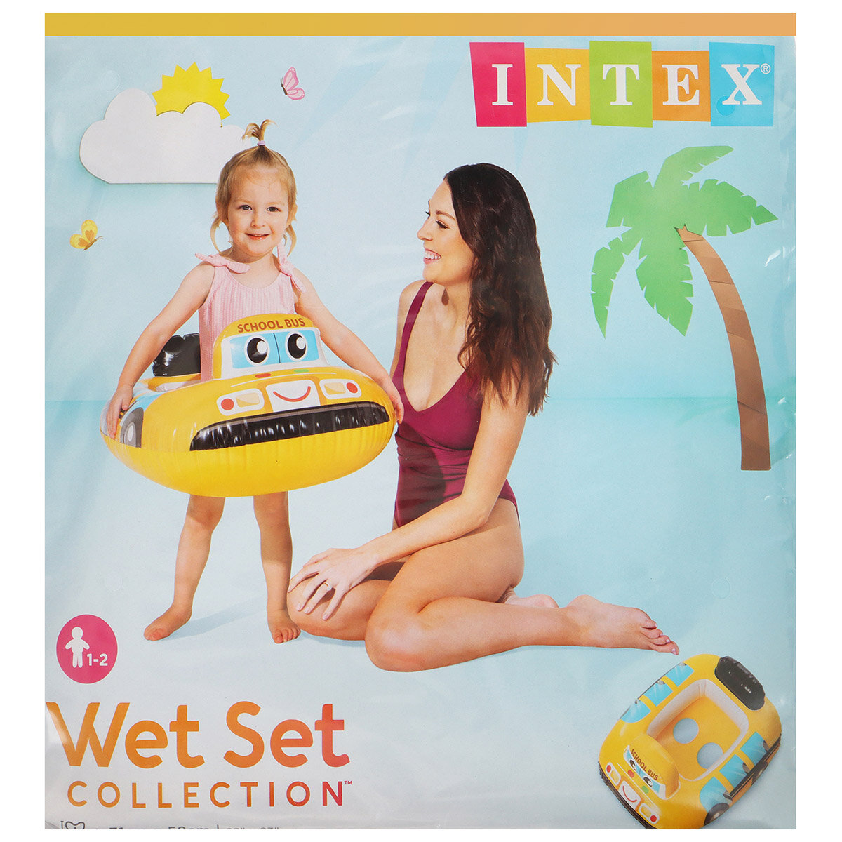 Отзывы на Надувной круг для плавания детский с ножками Автобус 71х58 см от 1 до 2 лет Intex 59586