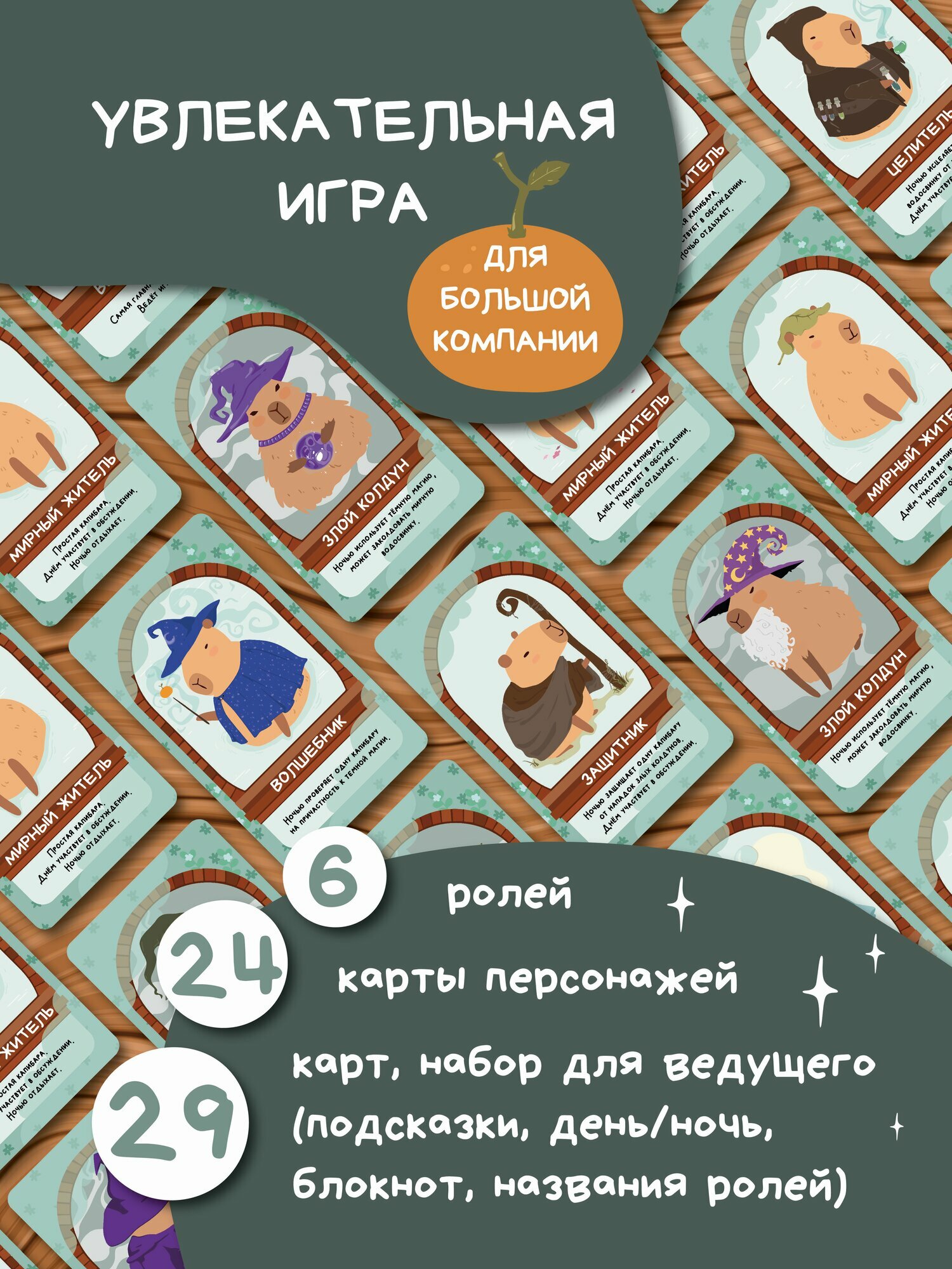 Карточная настольная игра Мафия капибара Волшебный мир капибар 54 карточки информация: