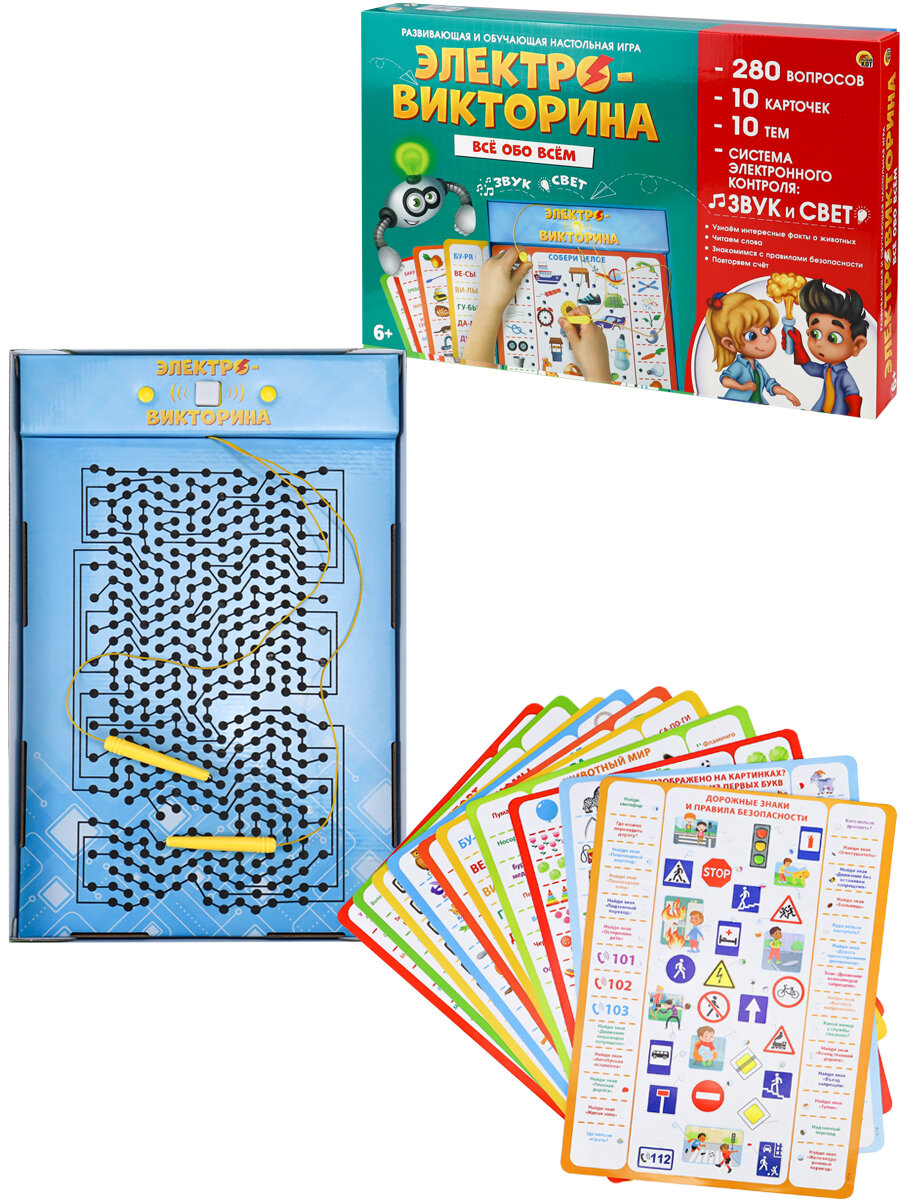 Электро-Викторина Рыжий Кот "Всё обо всем" для детей 6+ 10 карточек, 280 вопросов, световые и звуковые эффекты информация: