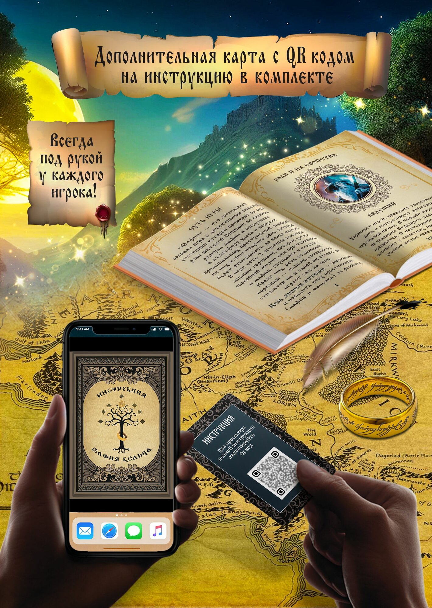 Карточная настольная игра Мафия Властилин колец коллекционная колода 54 карточки