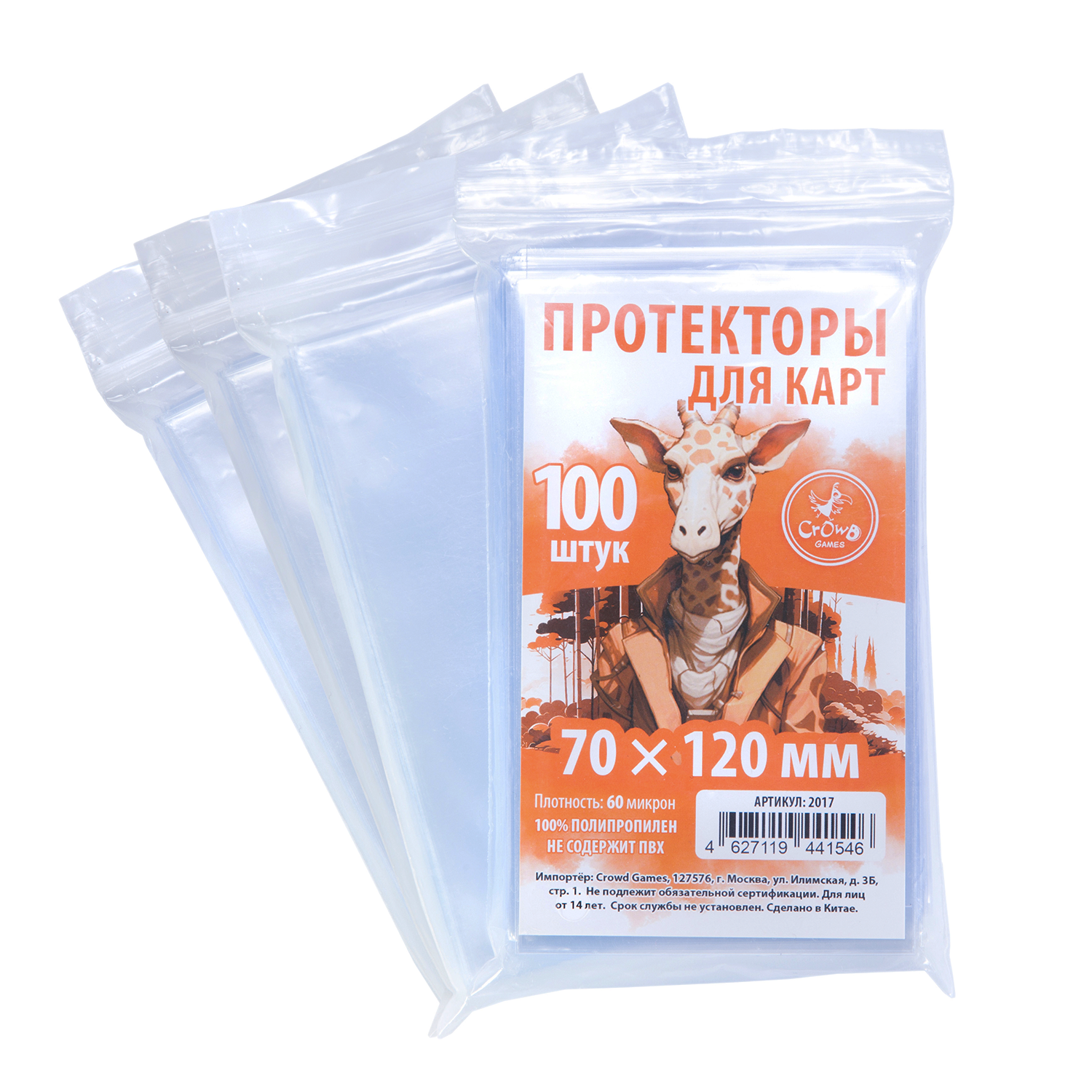 Протекторы Crowd Games для карт 70 x 120 мм (60 мк, 100 шт.), 4 пачки информация: