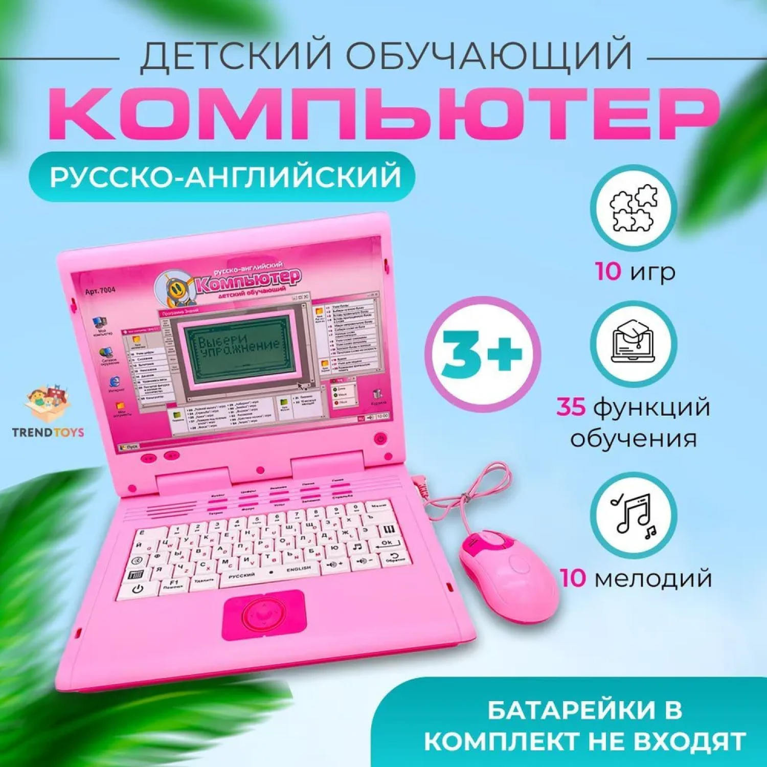 Отзывы на Детский ноутбук TrendToys детский компьютер обучающий для детей с мышкой, розовый