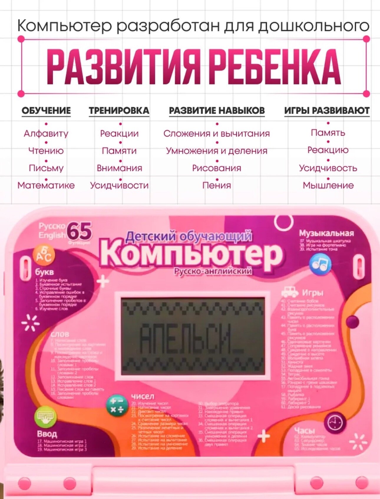 Отзывы на Ноутбук с мышкой для детей, обучающий, 35 развивающих программ, розовый