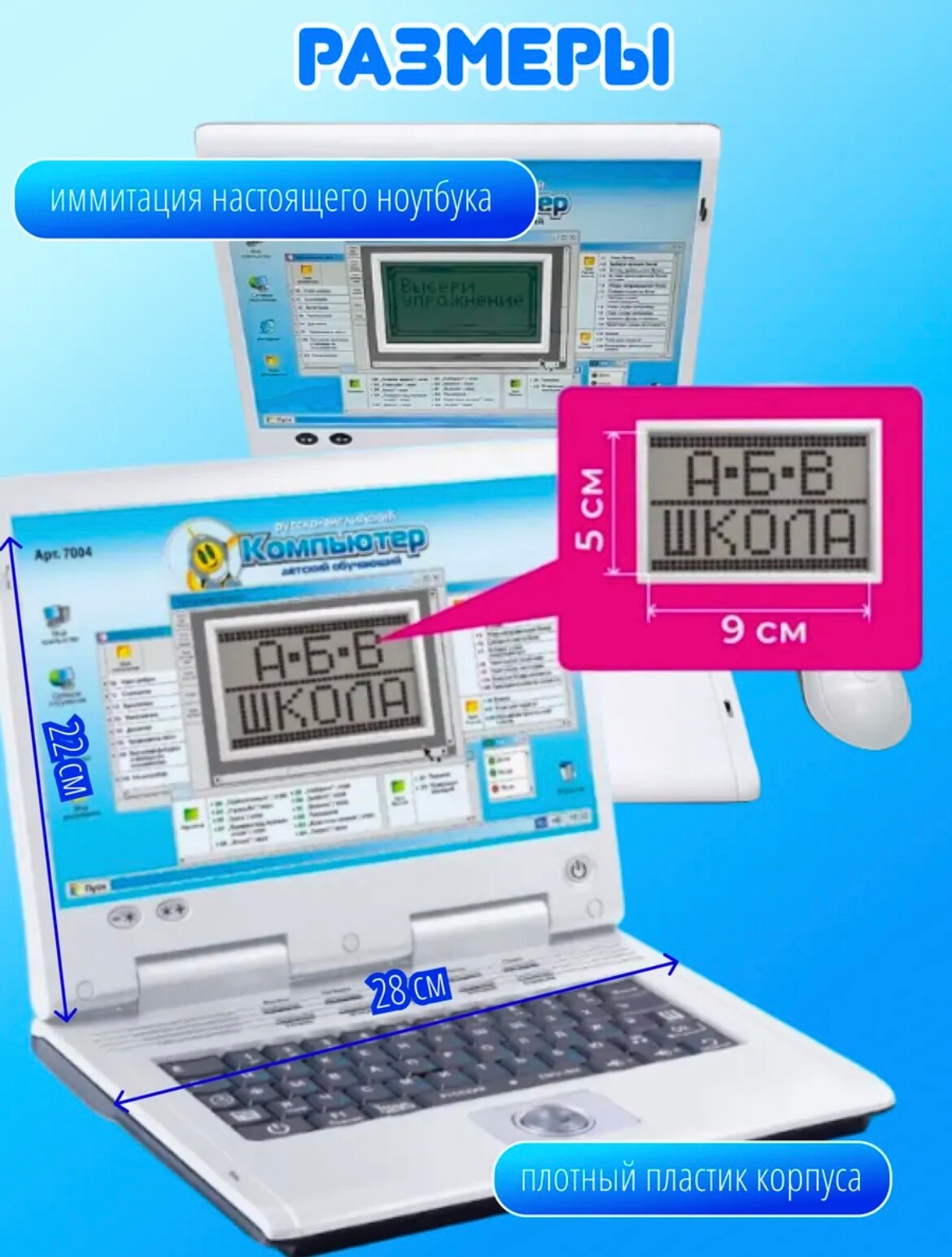 Детский компьютер, ноутбук обучающий с мышкой, 2 языка, (35 функций), детская интерактивная игрушка