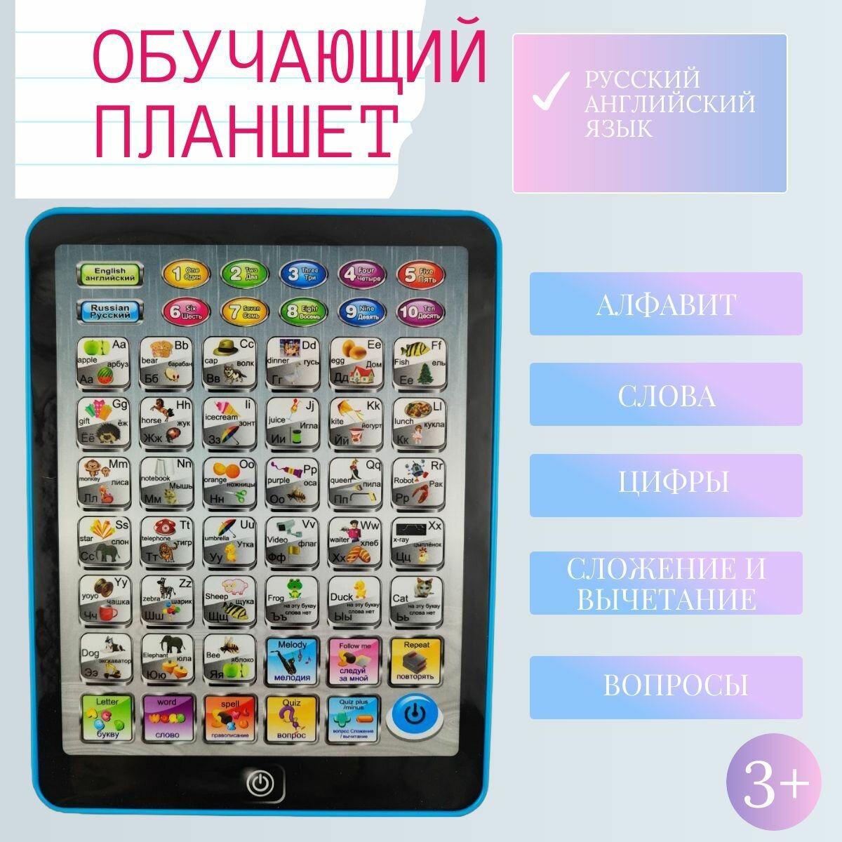 Отзывы на Детский обучающий планшет с алфавитом , русский и английский язык