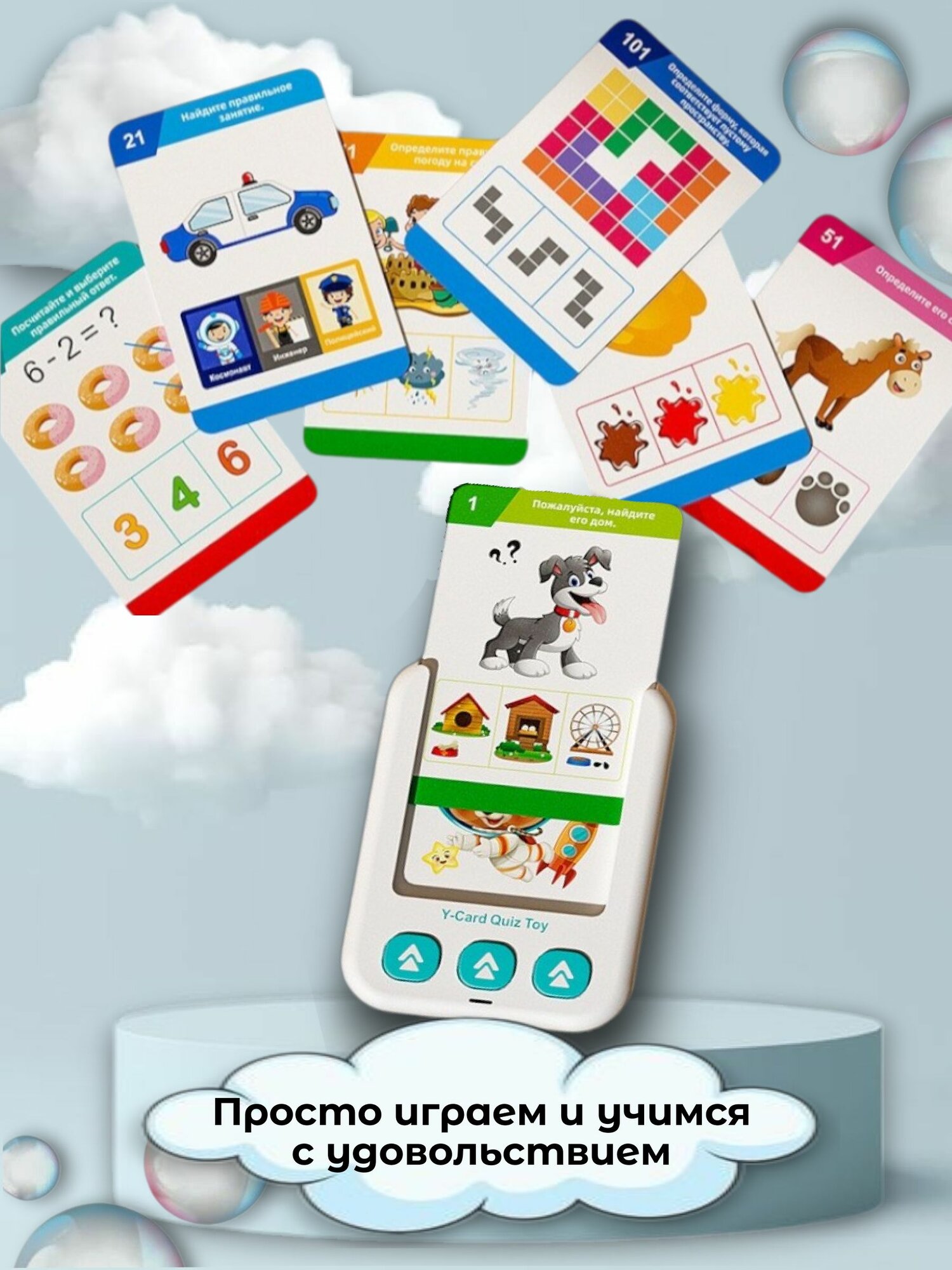 | Развиваемые навыки | бытовые и социальные навыки, изучение геометрических фигур, изучение цветов, иностранные языки, логика и мышление, музыкальный слух и чувство ритма, память и внимание, речь и чтение, словарный запас, социально-эмоциональные навыки, творческое мышление, эрудиция, интерес к наукам, координация и равновесие, моторика и ловкость, самостоятельность |
