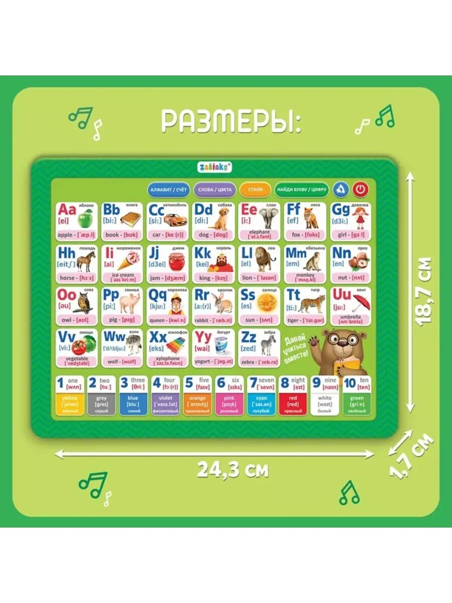 Обучающий планшет с английским алфавитом, зелёный информация:
