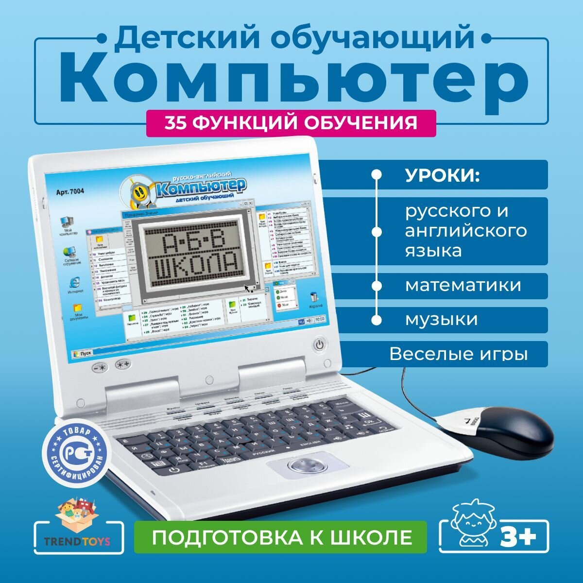 Детский компьютер, ноутбук обучающий с мышкой, 2 языка, (35 функций), детская интерактивная игрушка