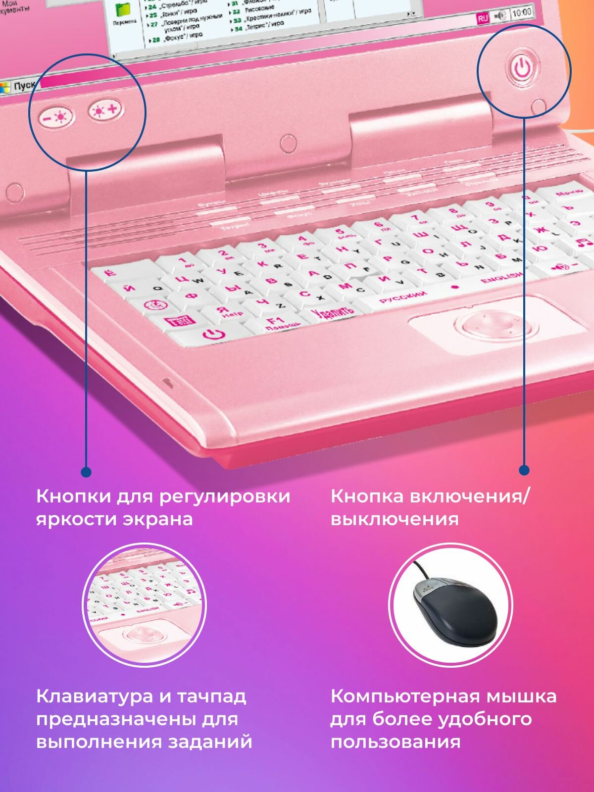 Детский компьютер, ноутбук обучающий с мышкой, 2 языка, (35 функций), детская интерактивная игрушка