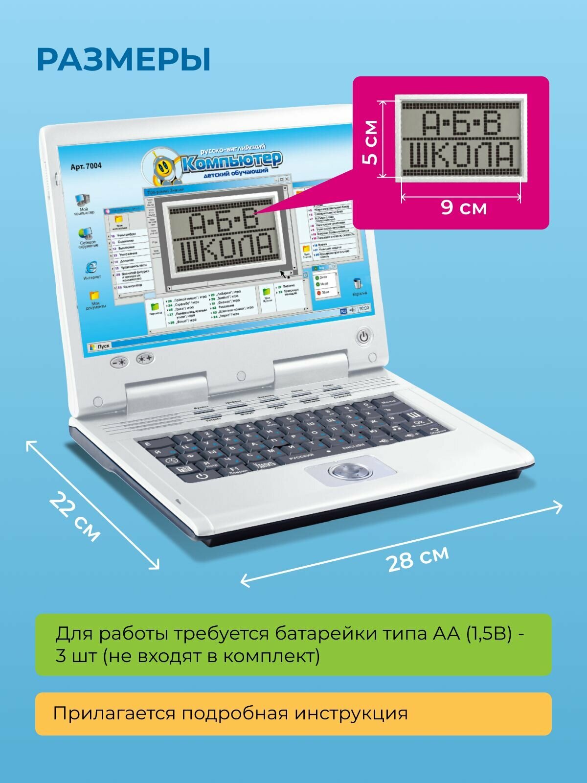 Детский компьютер, ноутбук обучающий с мышкой, 2 языка, (35 функций), детская интерактивная игрушка