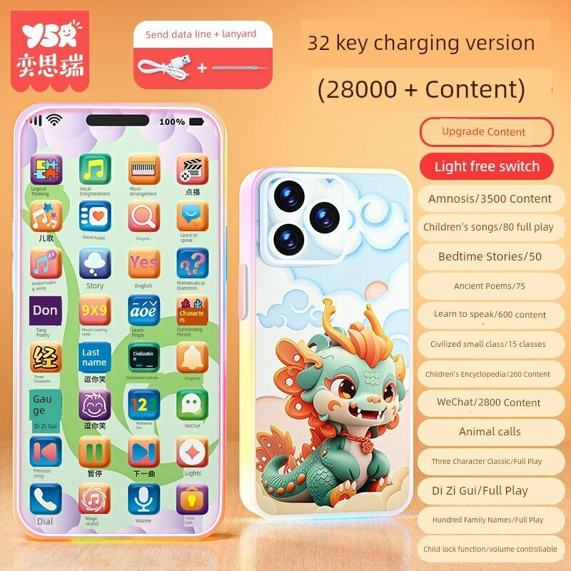 Детский развивающий телефон "Маленький зеленый дракон" с 32 клавишами и 28000 обучающих материалов информация:
