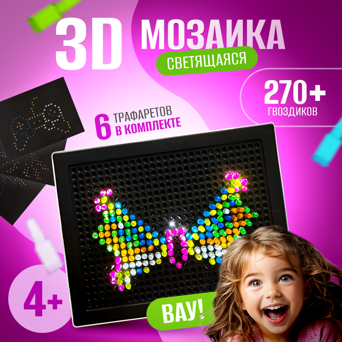 Отзывы на Светящийся конструктор-мозаика Light circle, 270 деталей, 6 трафаретов