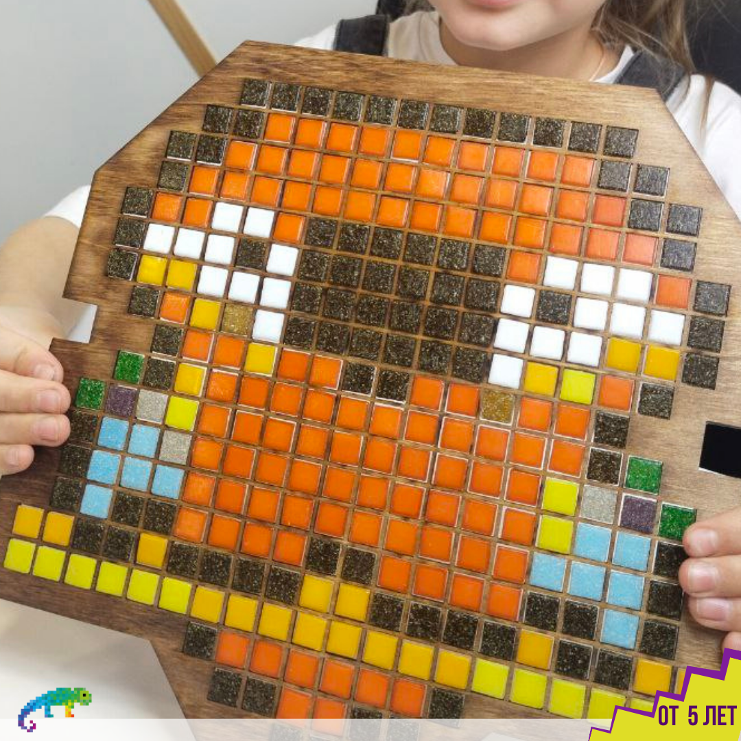 | Дополнительная информация | В комплект входят: Форма-матрица из фанеры и разноцветные фишки из прессованного стекла и мрамора, которые крепятся на клейкую ленту. Есть подставка. Набор упакован в картонную коробку размером 30*30* см. Конструкция мозаики позволяет с лёгкостью фиксировать детали, которые состоят из высококачественных материалов, абсолютно безопасных для здоровья ребёнка. |