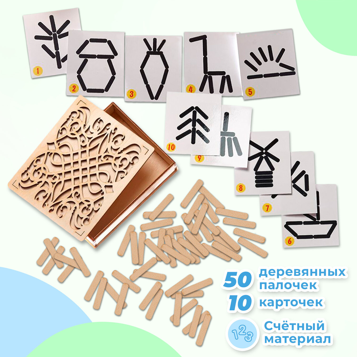 10 цен на Мозаика из палочек Smile Decor "Мой мир" с набором карточек, 50 деталей из дерева