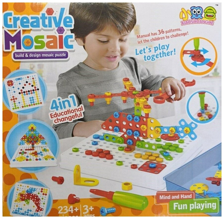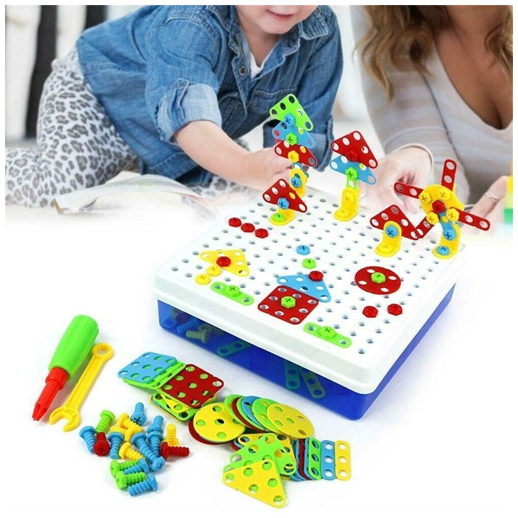 10 цен на Развивающий детский конструктор мозаика с шуруповертом на батарейках 237 предметов