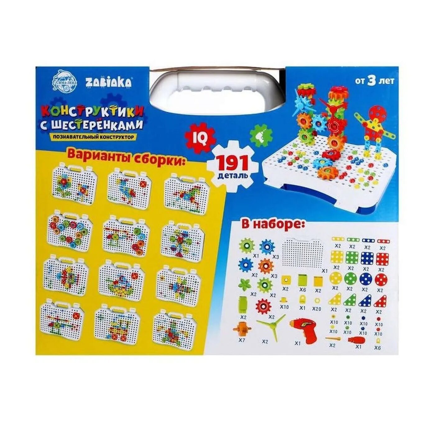 Zabiaka. Констркутор винтовой "Конструктики с шестеренками" 191 деталь, с шуруповертом, познавательный, от 3 лет информация: