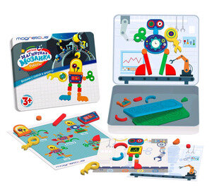 Отзывы на *Мозаика(Magneticus) Магнитная_3+ ВозьмиССобойВДорогу Роботы [метал. коробка;43магн. эл.+3вращ. эл;4фона; накл.] (MC-014)
