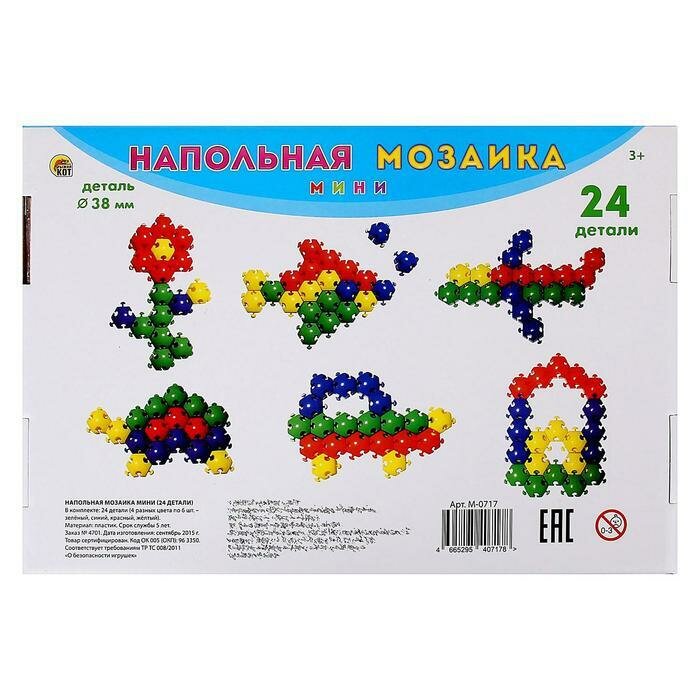 Напольная развивающая игра-мозаика для малышей "Мини", развитие моторики и воображения, 24 разноцветных элемента диаметром 38 мм информация: