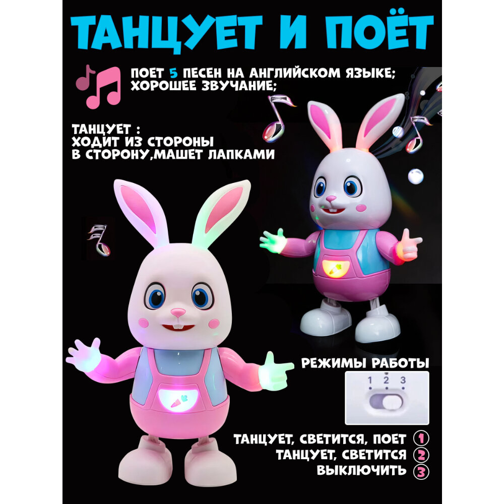 Интерактивная игрушка-робот Зайчик 26,5 см танцует и поет, светятся живот, ручки и ушки, на батарейках, в подарок для девочки, мальчика, Т2024 информация: