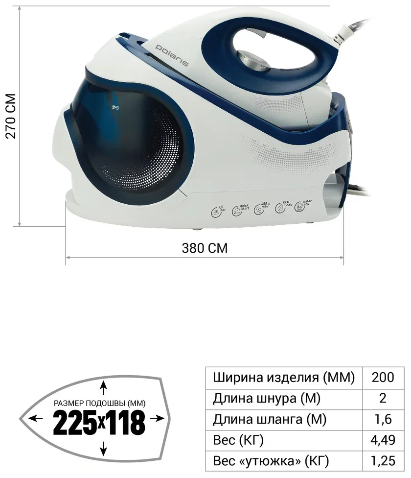 Парогенератор Polaris PSS 7530K белый/синий информация: