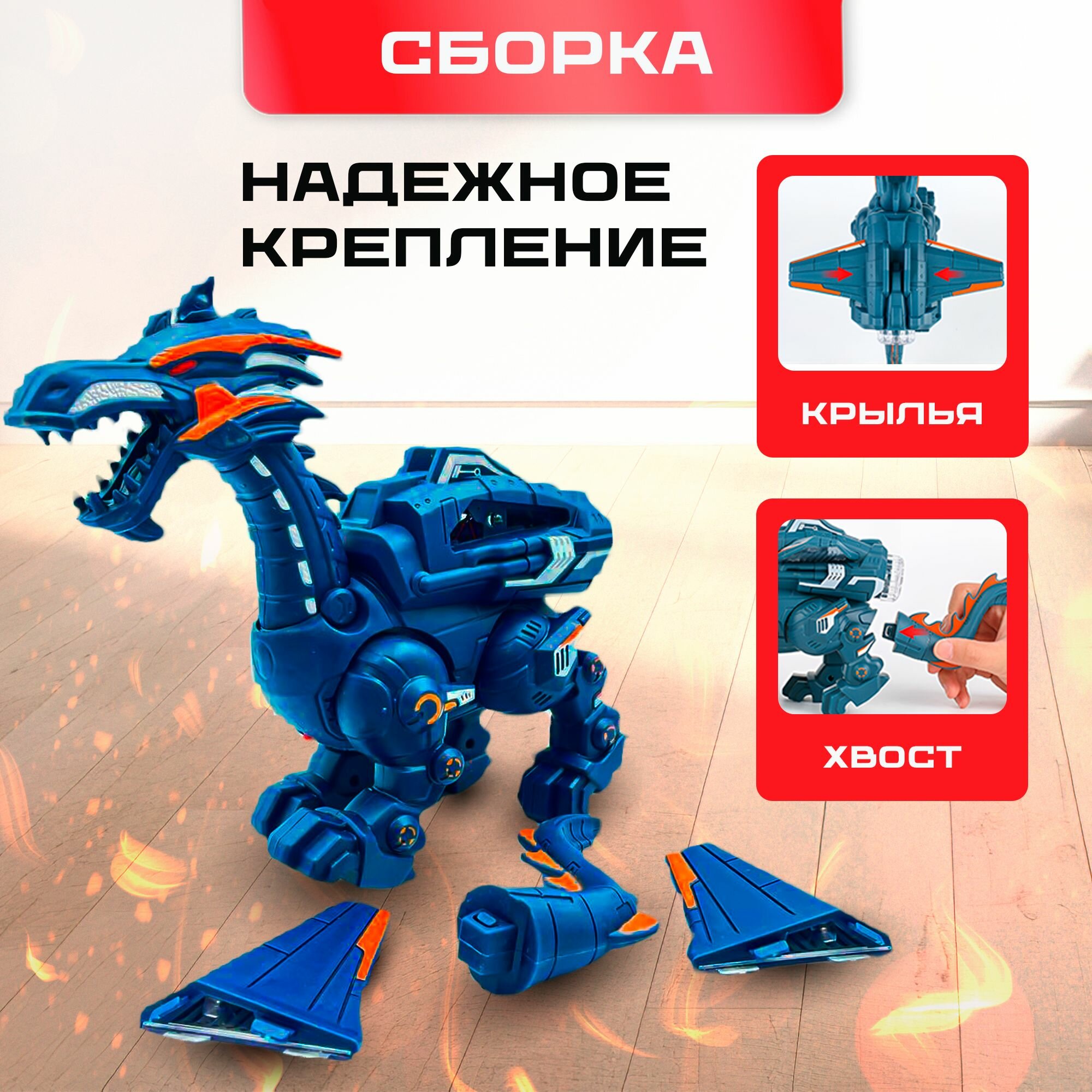 Интерактивный дракон, игрушка для детей робот динозавр со светом, звуком и паром - SHARKTOYS информация: