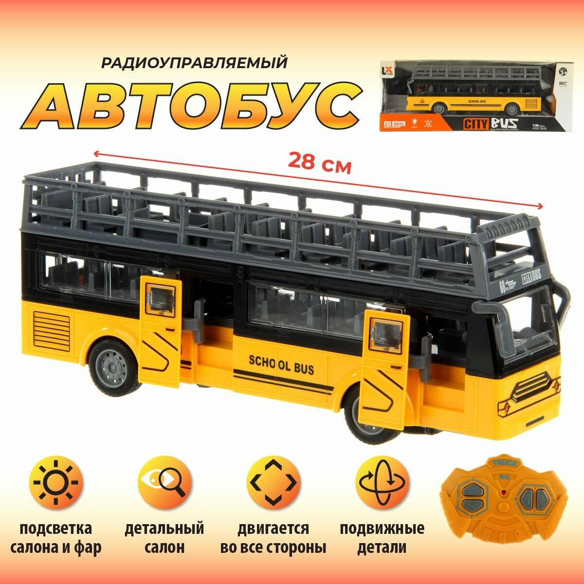 Детский двухэтажный автобус на радиоуправлении со светом, Veld Co / Игрушка автобус на пульте управления для детей информация: