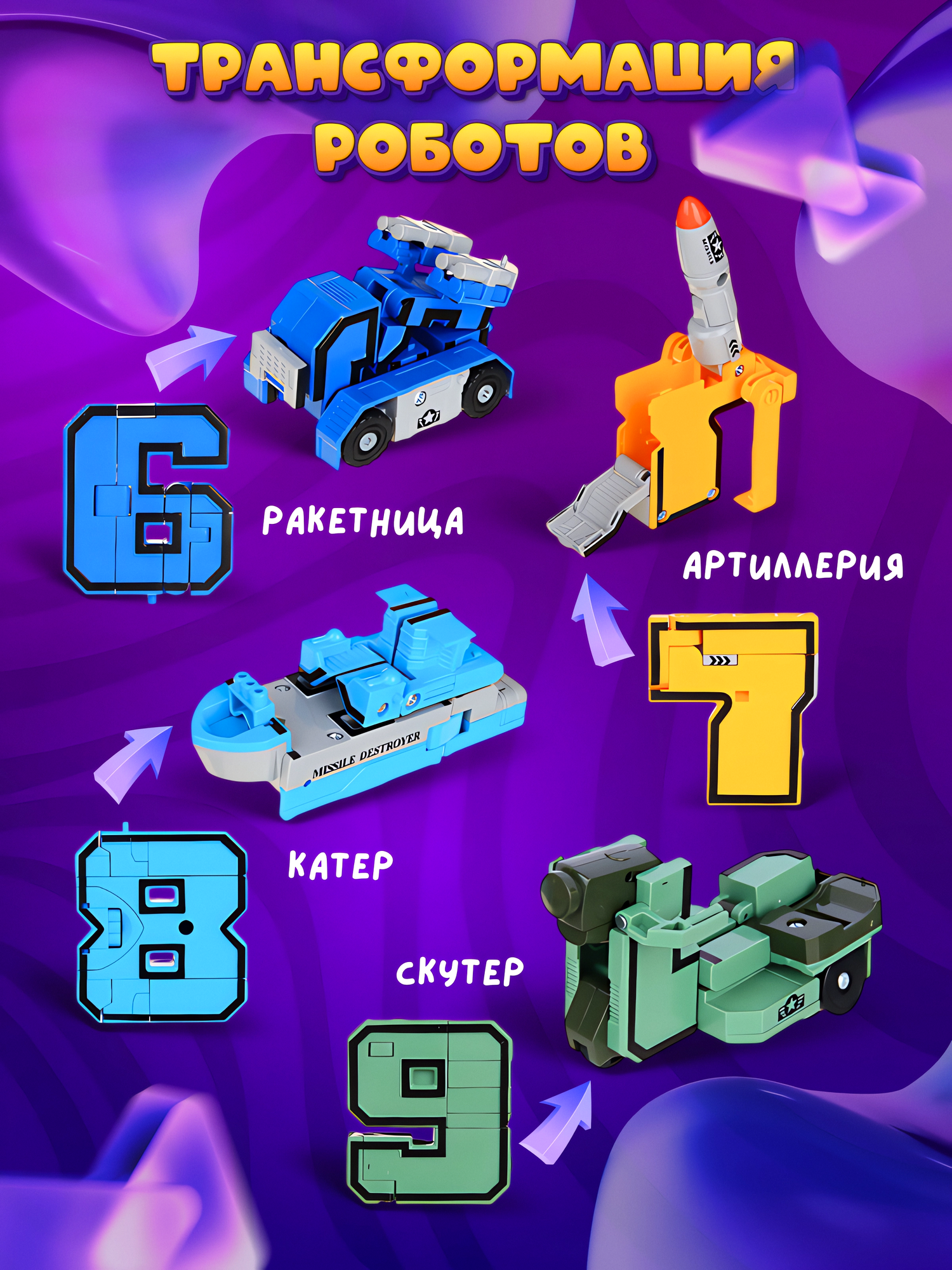 10 цен на Трансформер "Цифры - Трансформеры" большой набор цифр 10в1, Набор Роботы цифры от 0 до 9 (7см)