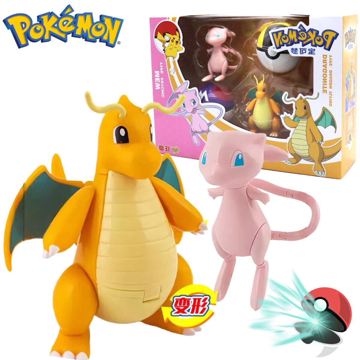 Игрушки покемон трансформер в покеболе Dragonite и Mew информация: