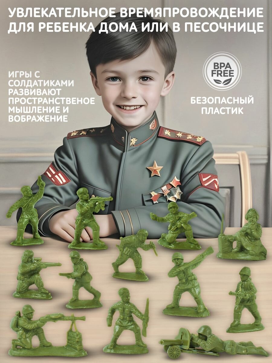 Солдатики для мальчиков набор Пехота, пластик, зеленые, 45мм информация: