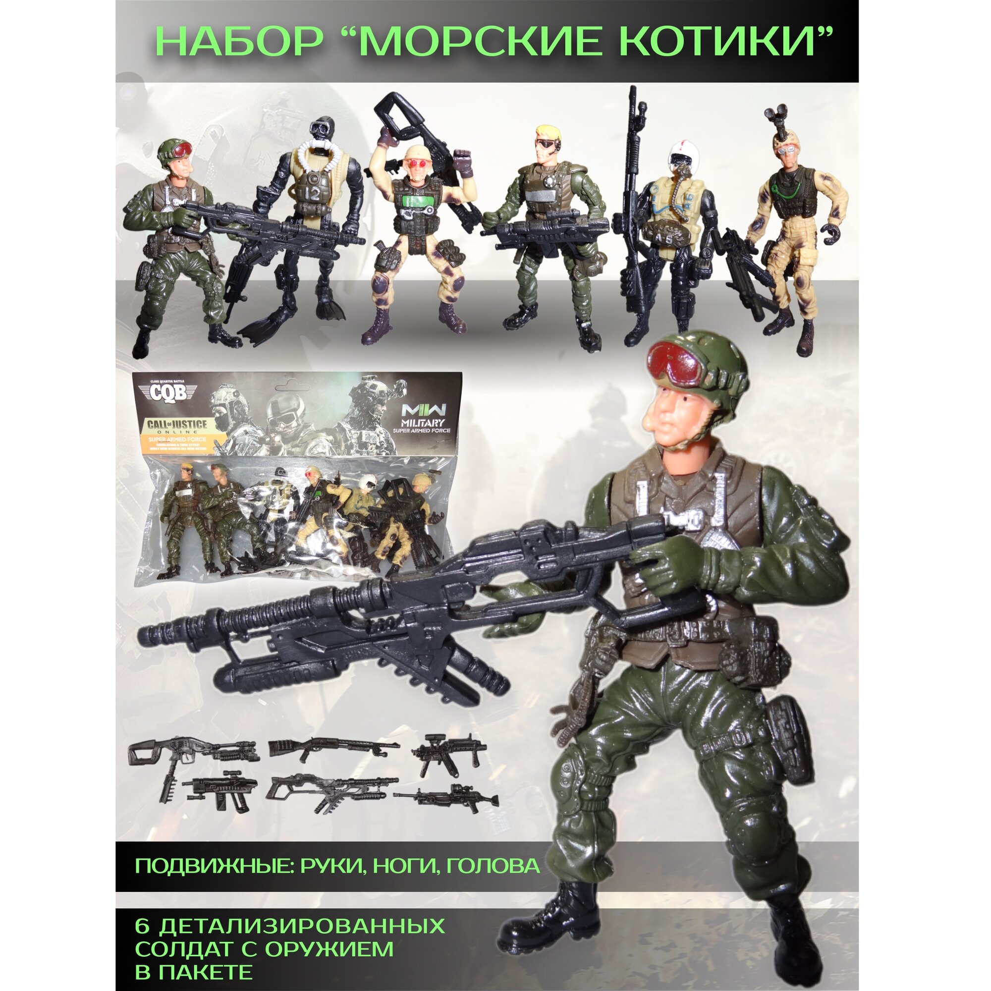 Мы выбрали 10 лучших цен на Игровой набор военные солдатики спецназ с оружием, 6 подвижных фигурок высотой 11 см, 7 аксессуаров. Перед тем как купить Игровой набор военные солдатики спецназ с оружием, 6 подвижных фигурок высотой 11 см, 7 аксессуаров посмотрите найденные предложения из Яндекс Маркета и других сайтов на основе XML фидов.