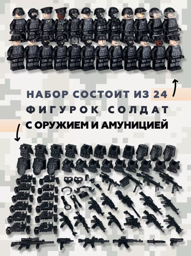 Отзывы на Человечки для конструктора военные солдатики с оружием 24 шт