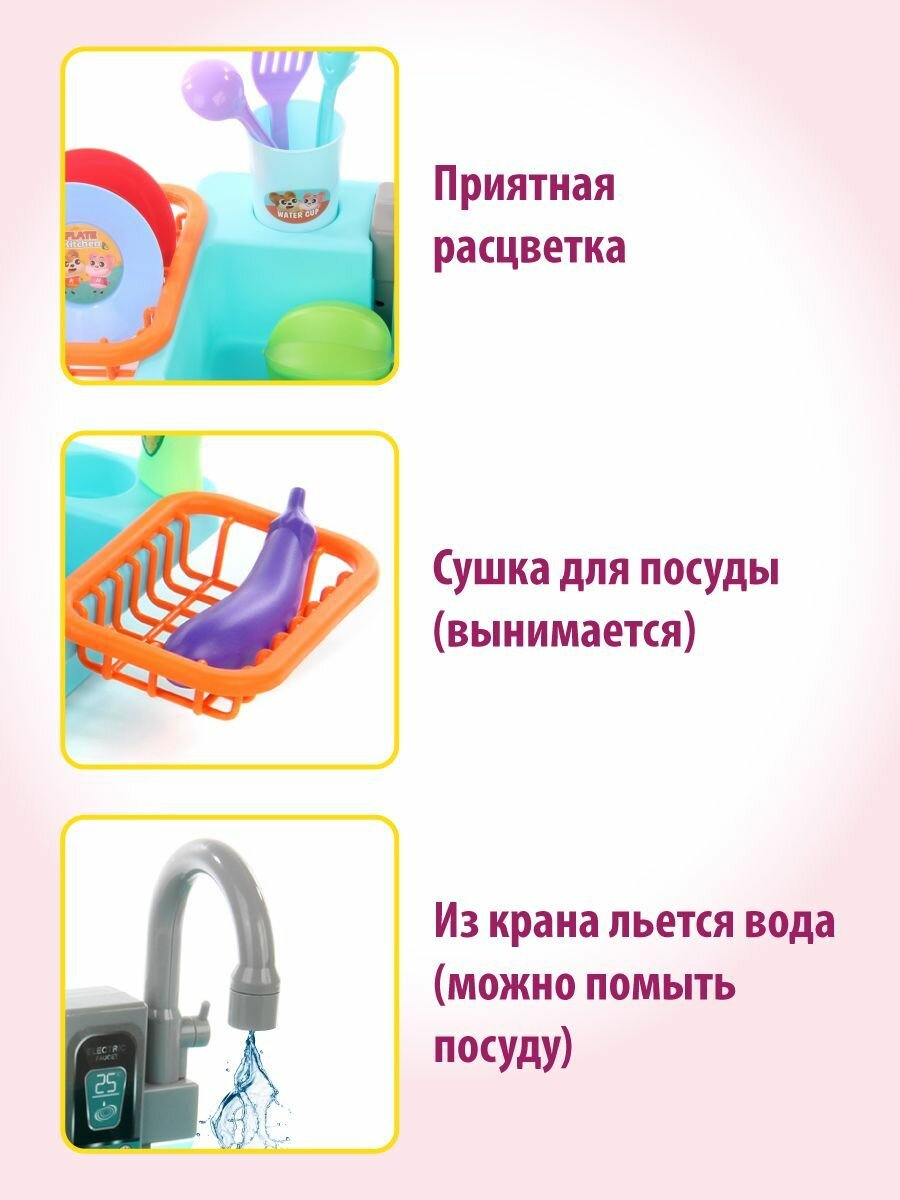 Детская игровая раковина с подачей воды и продуктами, Veld Co / Игрушечная бытовая техника со светом и звуком информация: