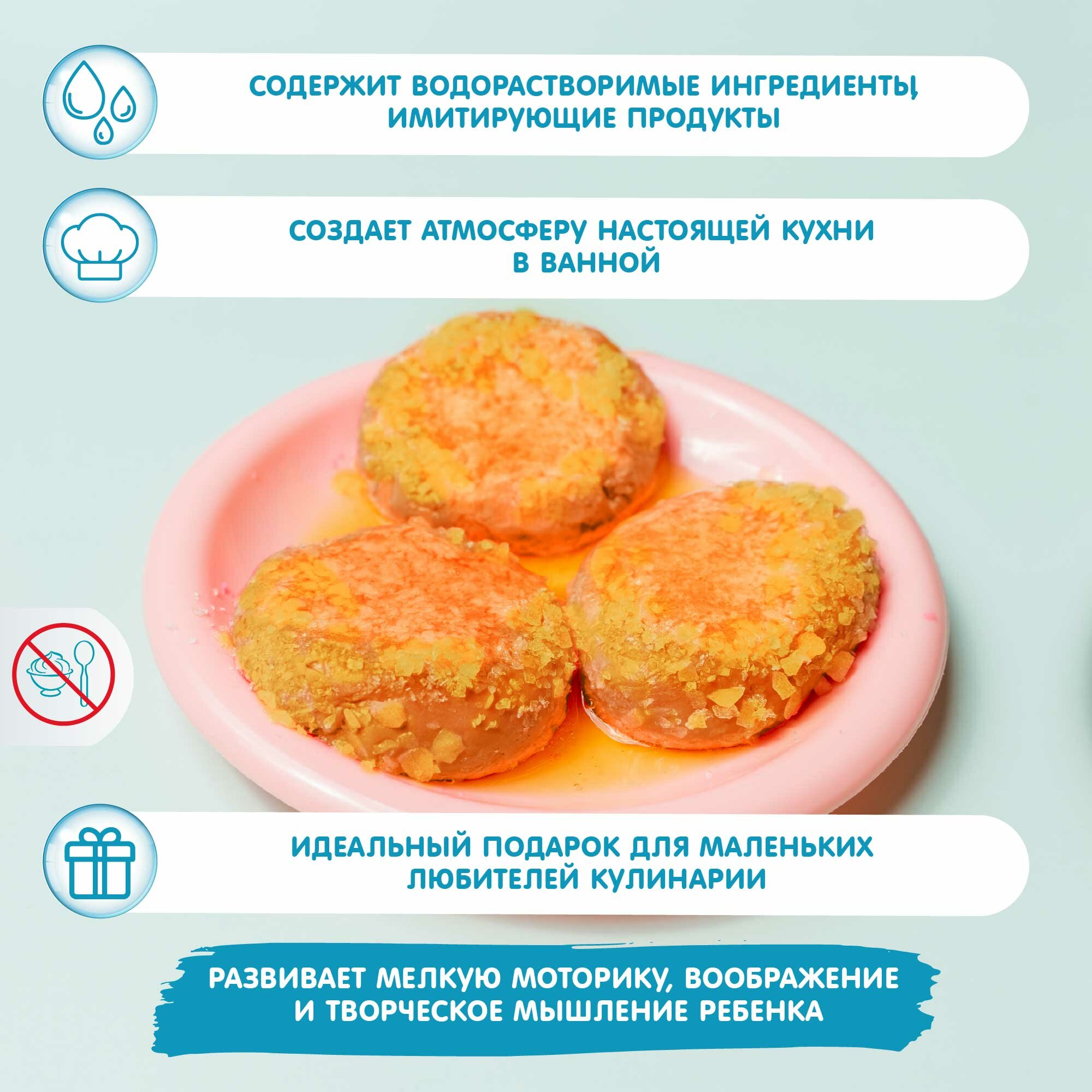 Набор игровой Baffy, для ванной, "Жарим котлетки", пластик, 30 предметов, купайся весело. информация: