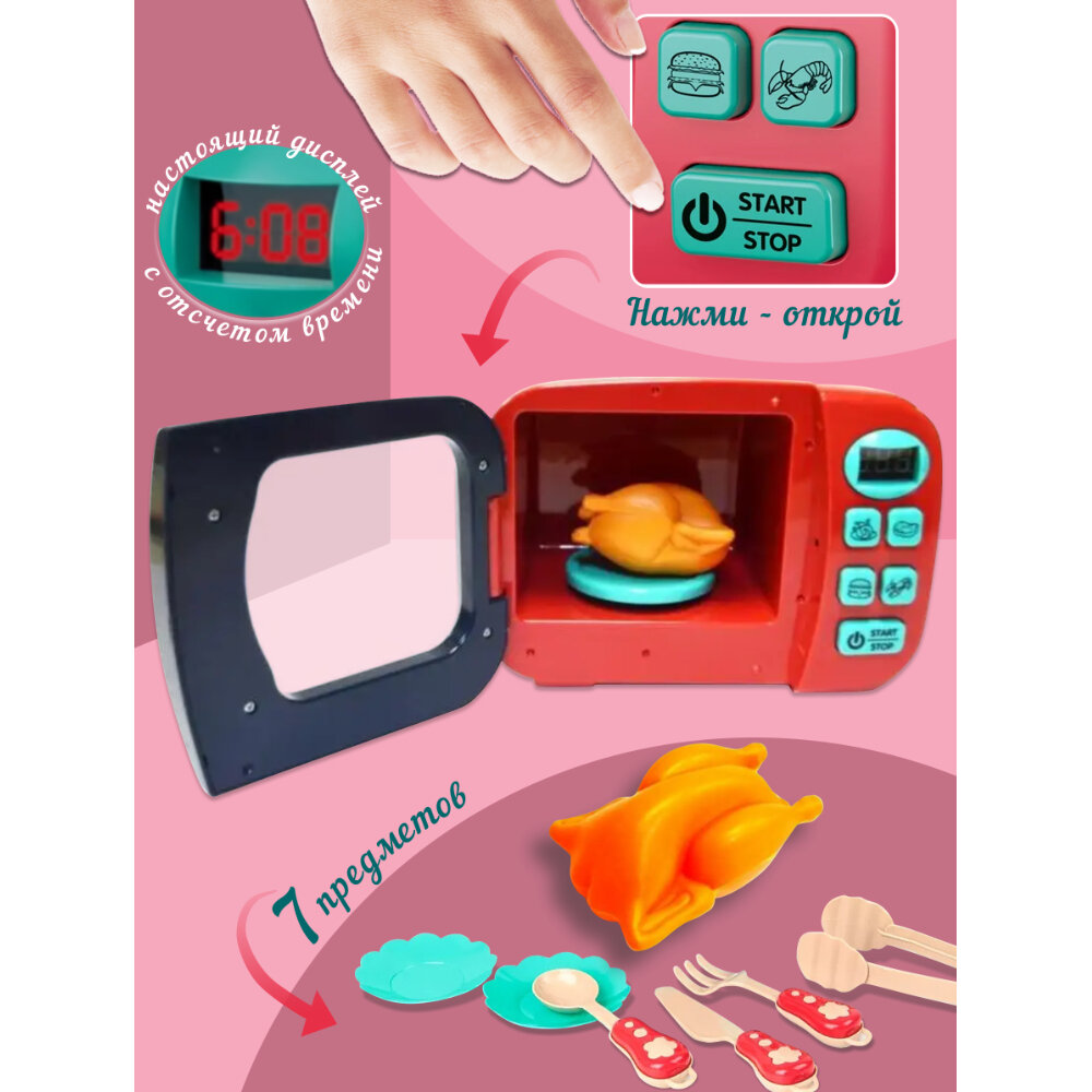 Отзывы на Игрушка бытовая техника микроволновка с аксессуарами и игрушечной едой для девочки 16 х 9 х 12 см, арт 6720A