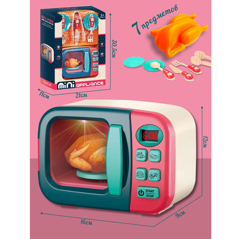 Игрушка бытовая техника микроволновка с аксессуарами и игрушечной едой для девочки 16 х 9 х 12 см, арт 6720A информация: