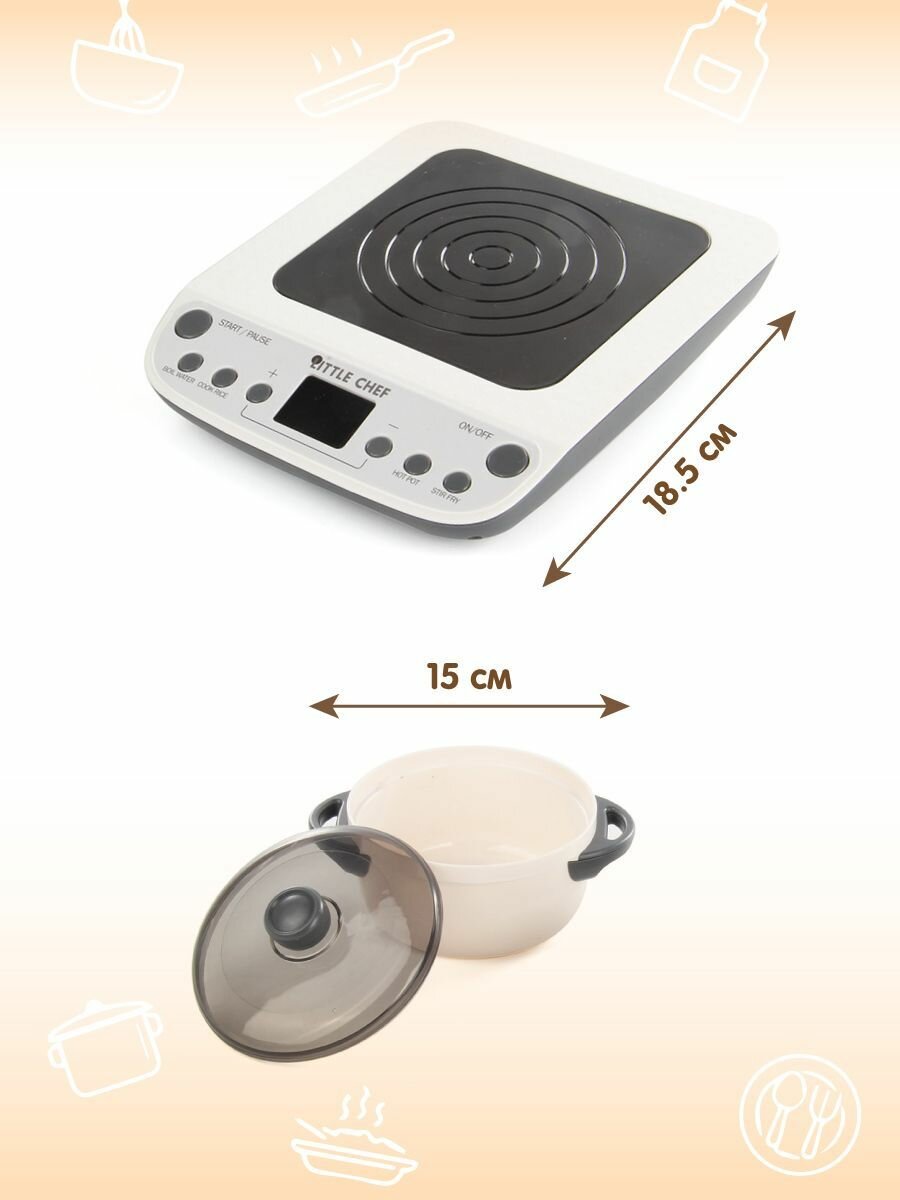 Детский игровой набор посуды с плитой, 9 предметов, Veld Co / Игрушечная бытовая техника со светом и звуком для детей информация: