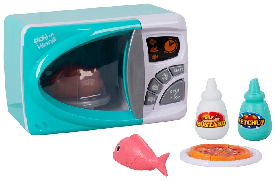 | Комплектация | микроволновая печь / тарелка / игрушечная рыба / курица / пицца / емкости Кетчуп / горчица |
