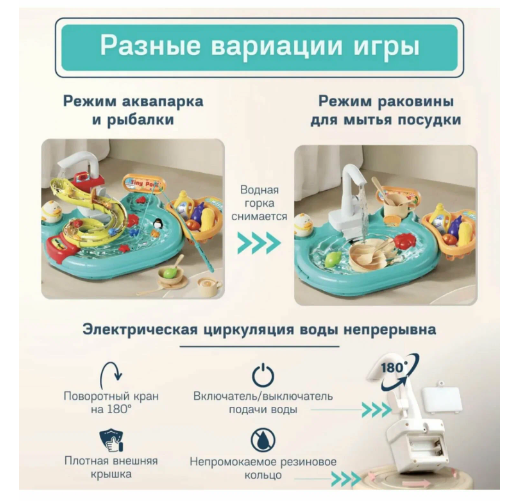 10 цен на Кухня детская игровая с водой, интерактивная, 22 предмета